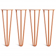 Hairpin Bench Legs – Steel – Copper – 40cm – 3 Rod Design – 10mm – Classic – Pack Of 4 – The Hairpin Leg Company