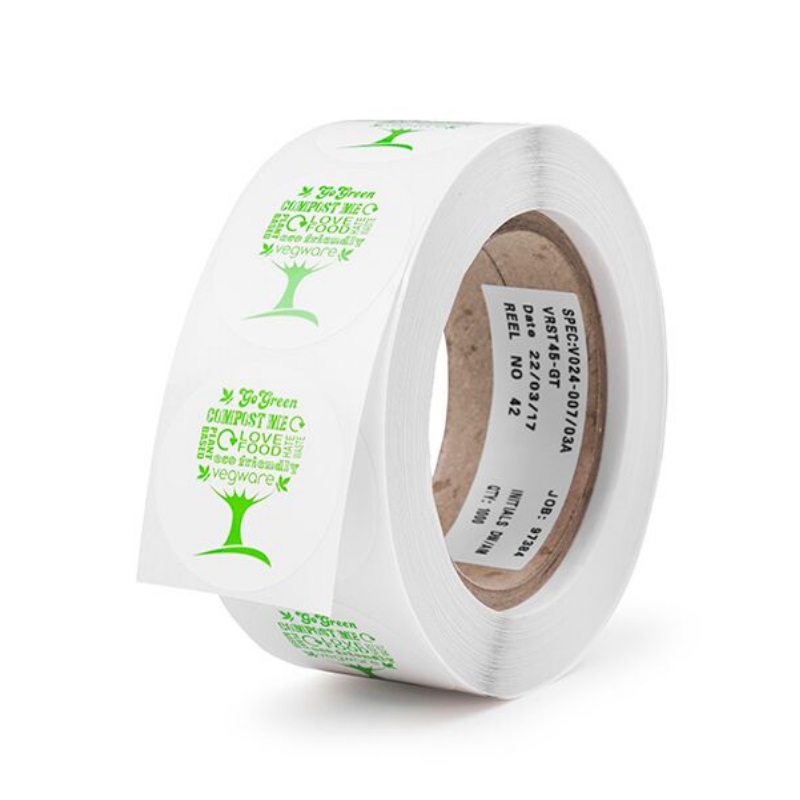 45cm Round Compostable Sticker – Green Tree design – Case (1000)
