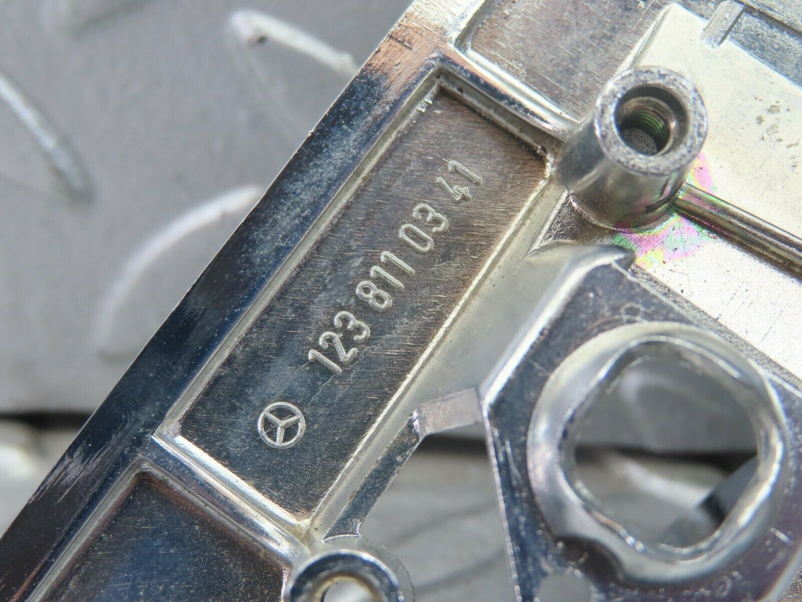 8275 Mercedes-Benz W123 Left Mirror Chrome Bracket 1238110341 – Classic Mercedes Parts