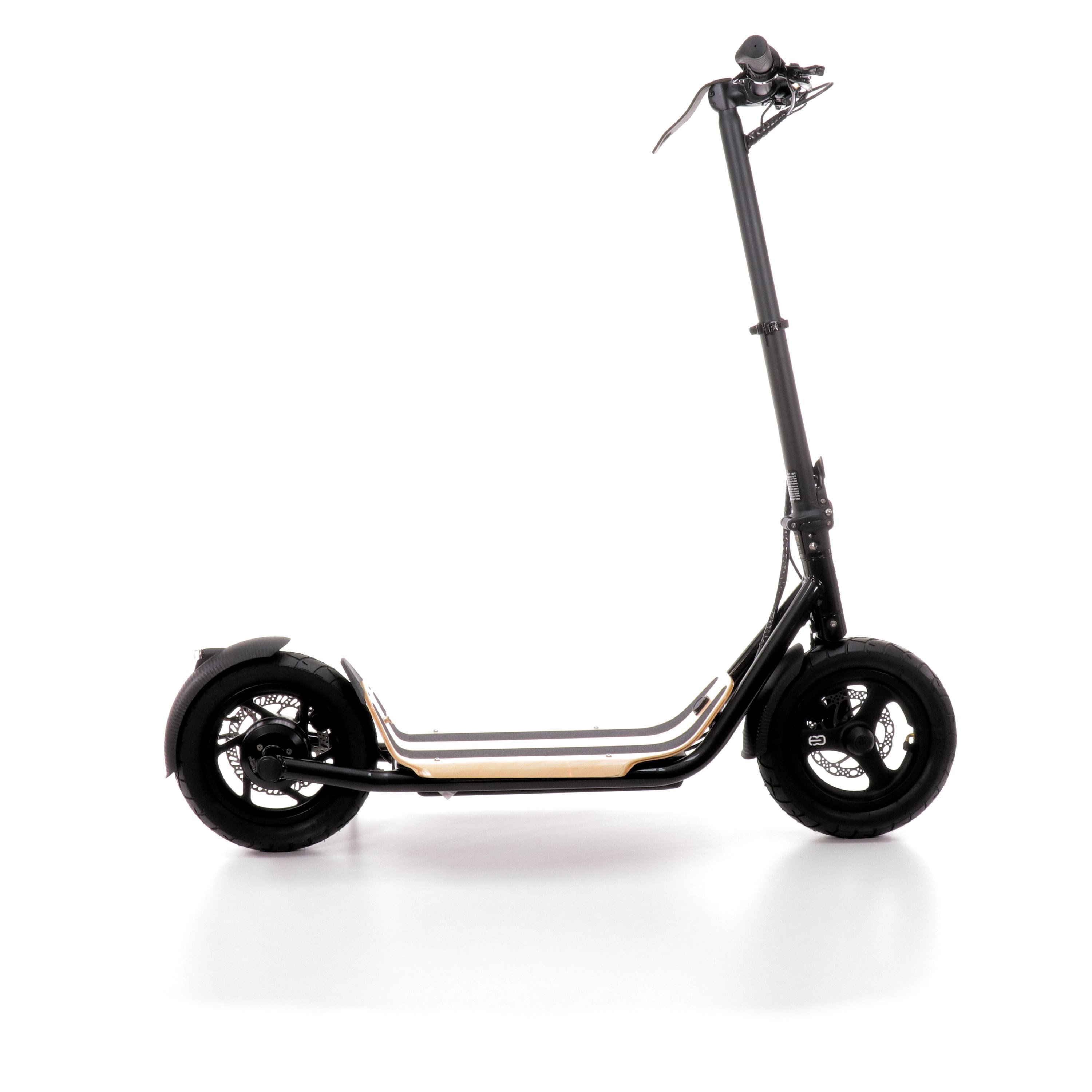 DescriptionFree Delivery within the UK, between 2-4 days delivery time.The B12 Classic features a 465Wh Panasonic battery for up to 32km range, and can achieve a 35km/h top speed. Braking comes from two dual-piston Tektro hydraulic brakes, while large 12-inch magnesium alloy wheels with air-filled tyres produce outstanding ride quality.8TEV’s mission when developing the B12 was to create a platform for safe, fun urban mobility, inspiring people to ride with confidence and control. In order to take the humble e-scooter to the next level, 8TEV went back to basics, starting with a clean design of a strong chromoly frame, stylish single blade fork, blended with proven automotive knowledge. This creates the basis for the B12 range’s outstanding performance. The 8TEV Classic features 12-inch wheels with high quality Japanese sealed bearings. The front wheel is produced using a high-pressure injection moulding process, using a high-grade magnesium alloy. This method of manufacture guarantees a high strength-to-weight ratio with an outstanding surface finish.Incorporating a 7-ply maple board with a carbon-reinforced upper, the B12’s board is as strong and reliable as they come. Complete with strategically-positioned grip tape to ensure safer footing, the deck is resistant to wear and tear, while helping to keep rough, uncomfortable surfaces in check in tandem with its large wheels.The 8TEV Classic has integrated LED lights which together offer high visibility so you can be seen whilst out riding in low light conditions. The light can be controlled from the display unit on the handlebar making it easy and safe to use, while the handlebar itself is ergonomically designed with high quality grips and easy-to-reach brake levers.SpecificationTop Speed: 15.5 mph / 25 km/hOptimum range: 19.8 miles / 32 kmMotor Power: 250 WSpeed Modes: 3Cruise Control Setting: NoCharge Time: 6 hoursBattery: 48 VWater Resistance: IPX6-rated, can be ridden in light rain. Battery management system is waterproofFront Wheel Type: PneumaticRear Wheel Type: PneumaticFront Wheel Size: 12 inches / 30.5 cmRear Wheel Size: 12 inches / 30.5 cmTyre Pressure: 40 PSI, regularly check the tyre pressure for optimal performance.Pre Inserted Puncture Prevention Fluid: NoAccessibilityScooter Weight: 17 kgFolded Dimensions: H 56.5 x L 115 x W 23 cmUnfolded Dimensions: H 120 x L 115 x W 23 cmAdjustable Stem: YesScooter foldable: YesRider Maximum Load: 120 kg / 19 stAge: 16 +AccessoriesMudguards: Built in mudguardsDisplay: Speed, battery, lightsBell / Horn: BellSafetyDrive Type: Rear wheel driveFront Brakes: DiscRear Brakes: DiscAccelerator Control: Thumb pressBrake Control: LeverHandlebar Grips: RubberFoldable Handlebars: NoFront Light Type: LEDRear Light Type: LEDReflectors: No