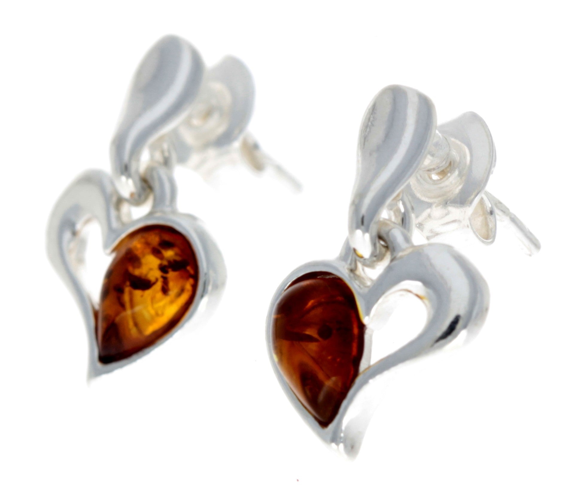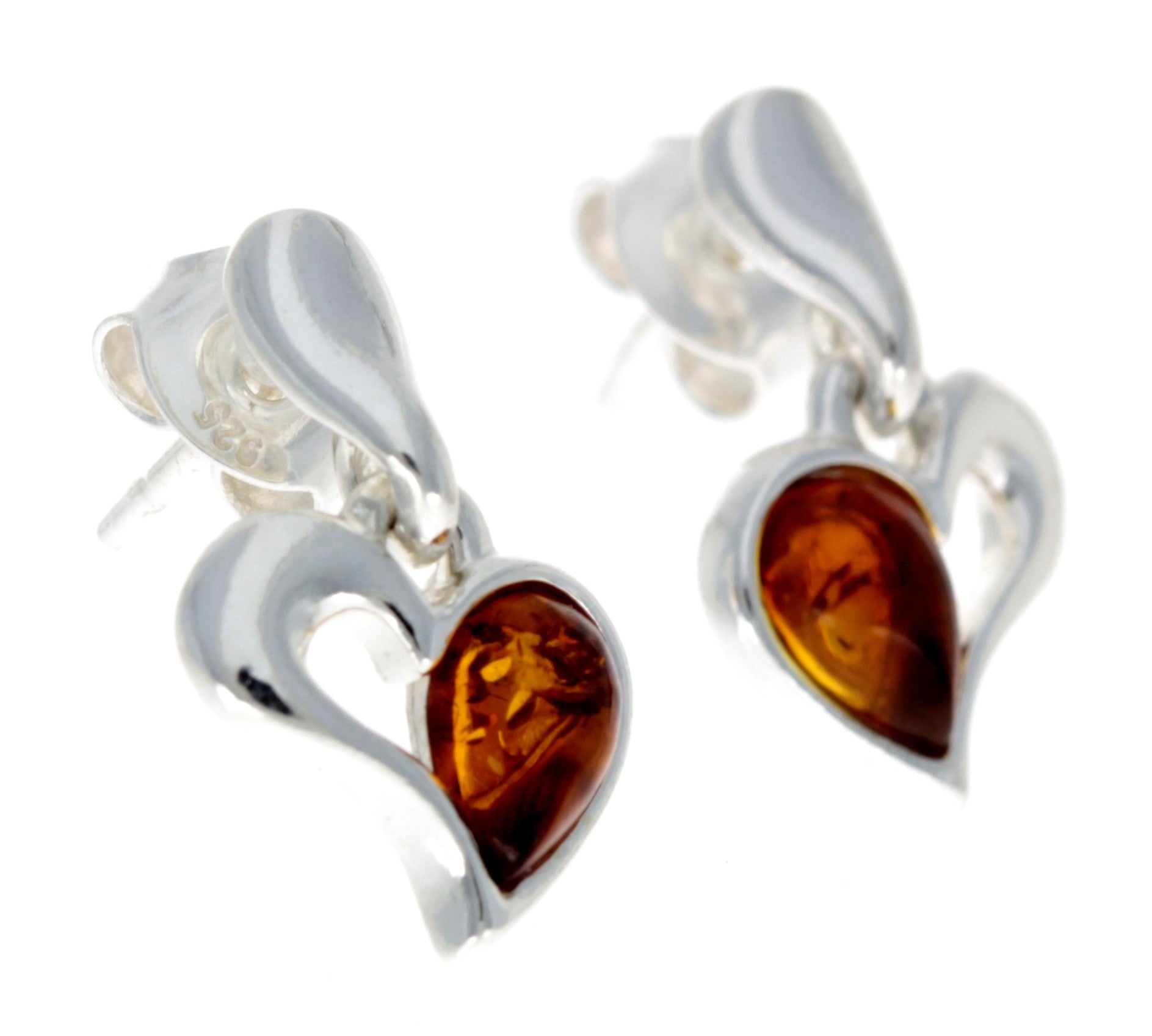 925 Sterling Silver & Baltic Amber Drop Hearts Earrings – GL154 Cognac – SilverAmberJewellery