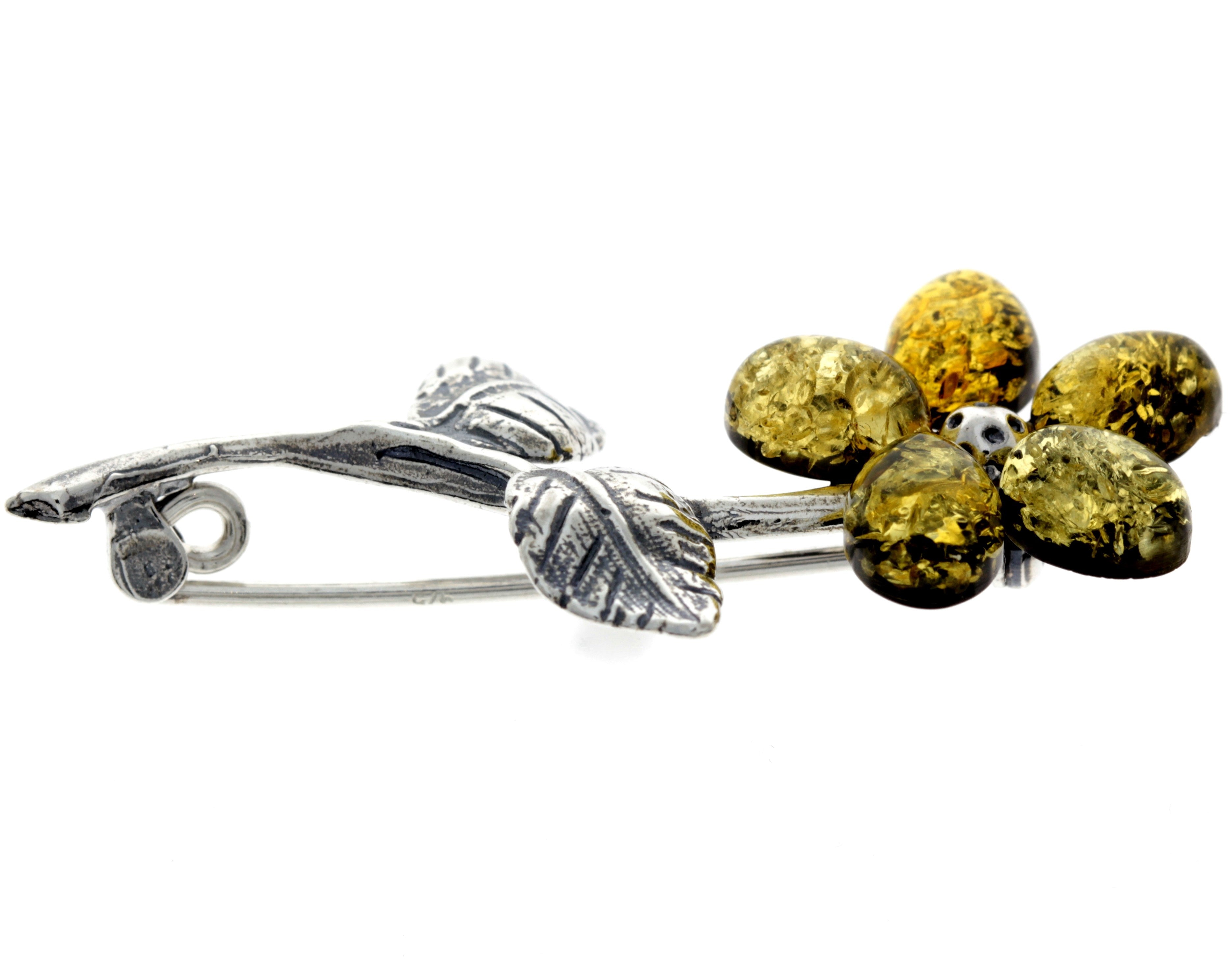 925 Sterling Silver & Baltic Amber Flower Brooch – 4015 Mix – SilverAmberJewellery