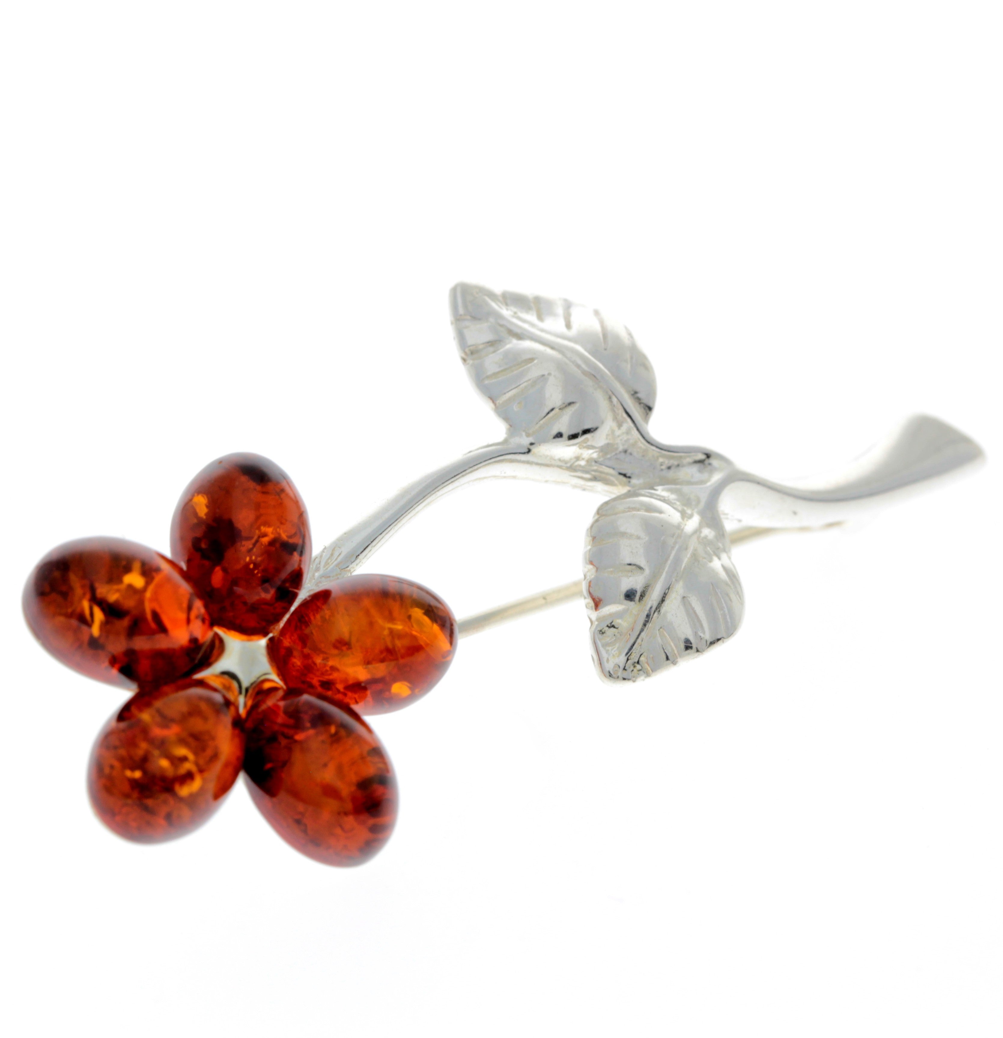 925 Sterling Silver & Baltic Amber Flower Brooch – AA801 Mix – SilverAmberJewellery