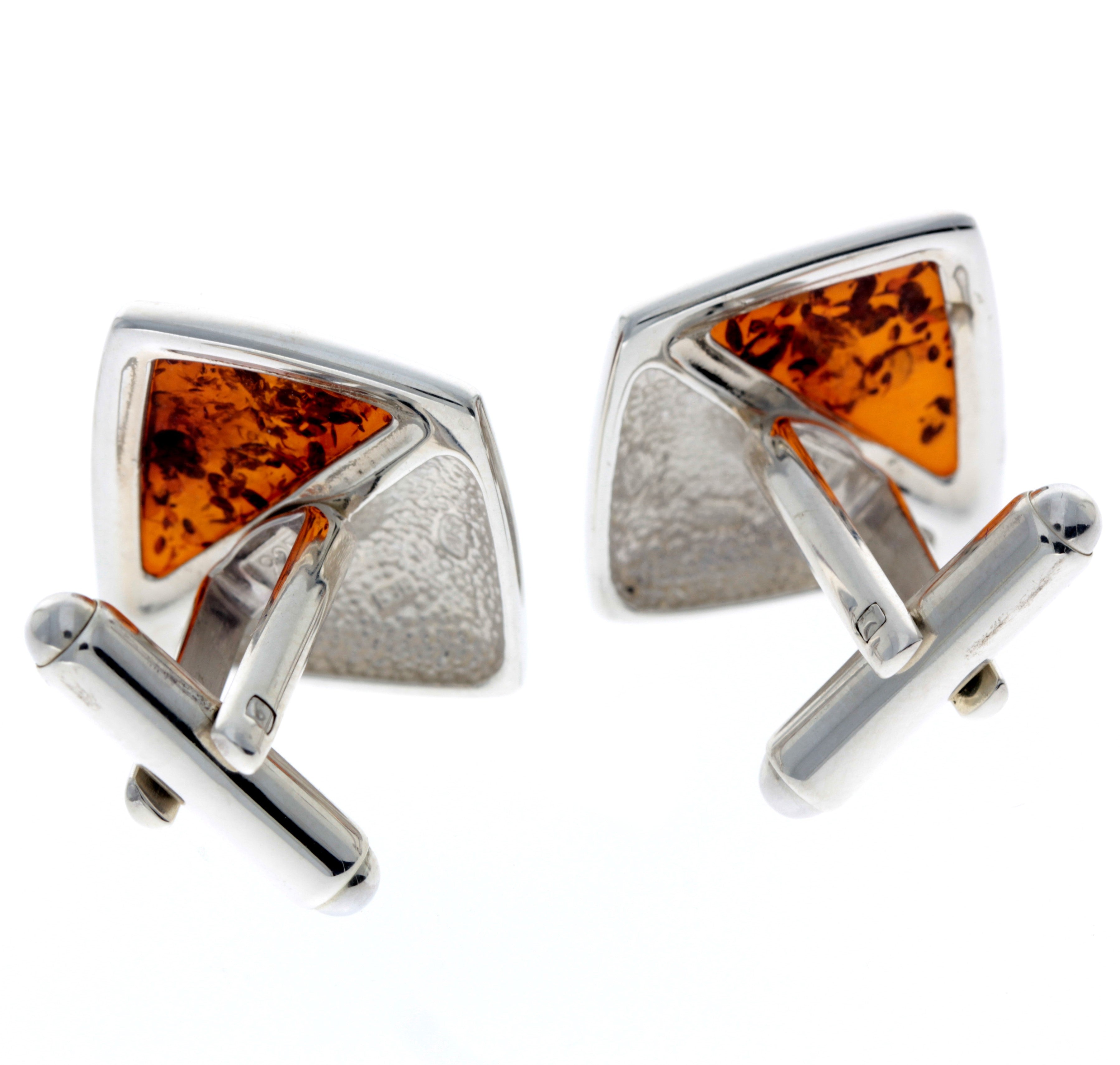 925 Sterling Silver & Baltic Amber Modern Cufflinks – AAC003 Cognac – SilverAmberJewellery