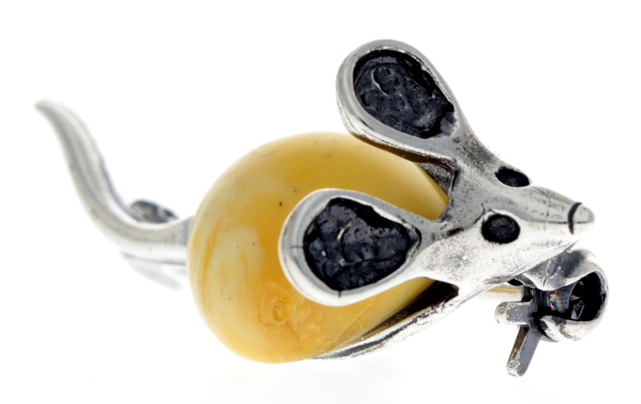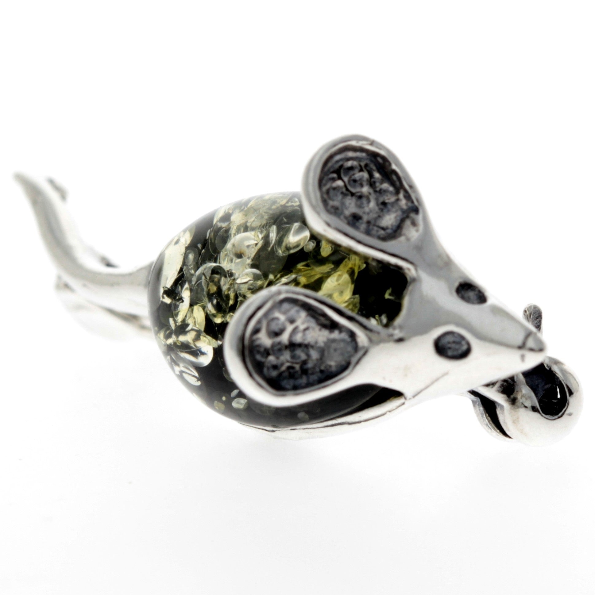 925 Sterling Silver & Baltic Amber Mouse Brooch – 4107 Green – SilverAmberJewellery