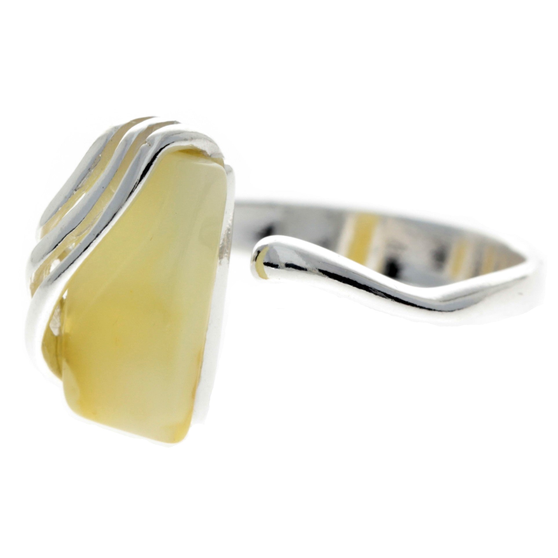 925 Sterling Silver & Genuine Baltic Amber Rectangular Modern Adjustable Ring – GL418A Lemon – SilverAmberJewellery