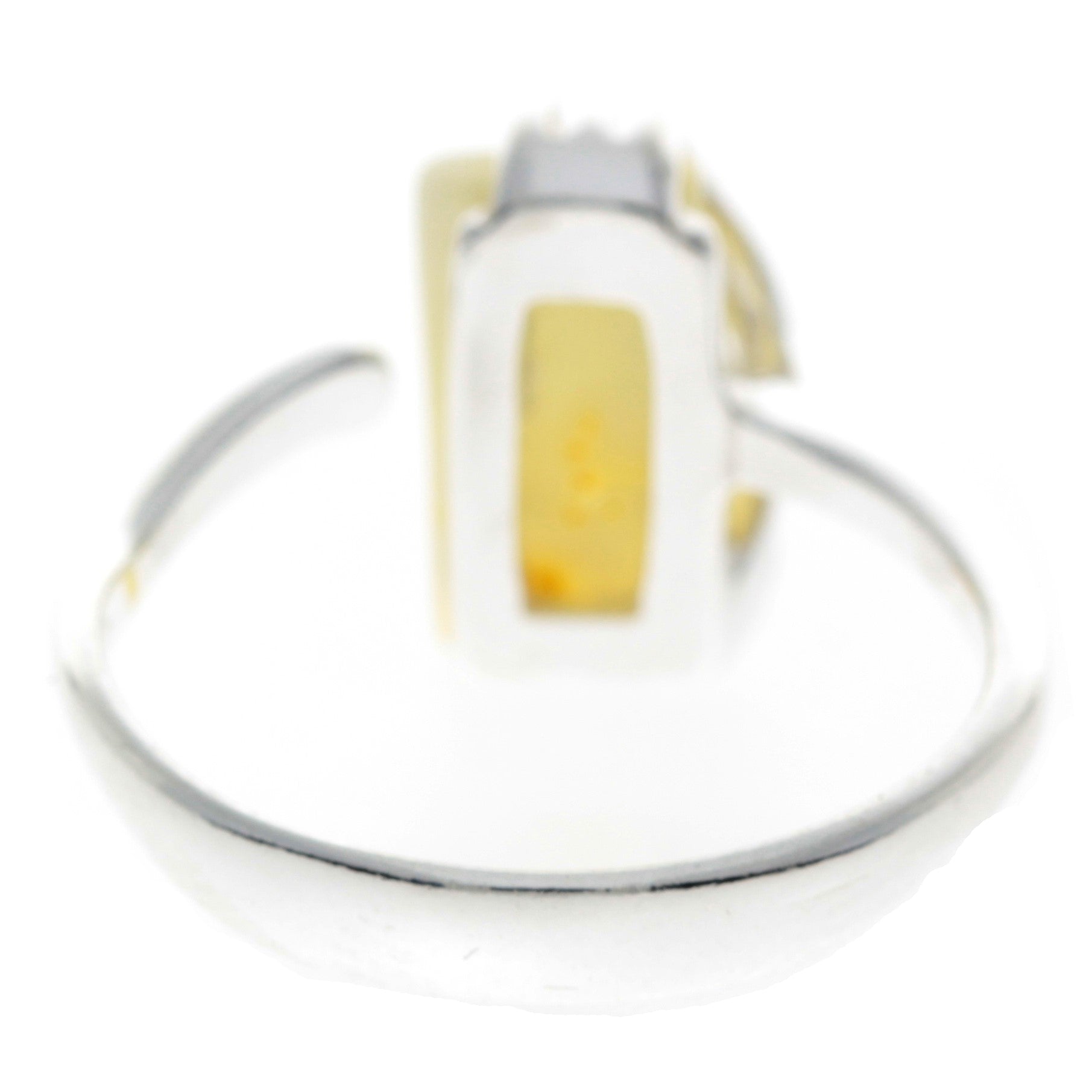 Specification: 925 Sterling Silver & Genuine Baltic Amber Rectangular Modern Adjustable Ring – GL418A Lemon – SilverAmberJewellery