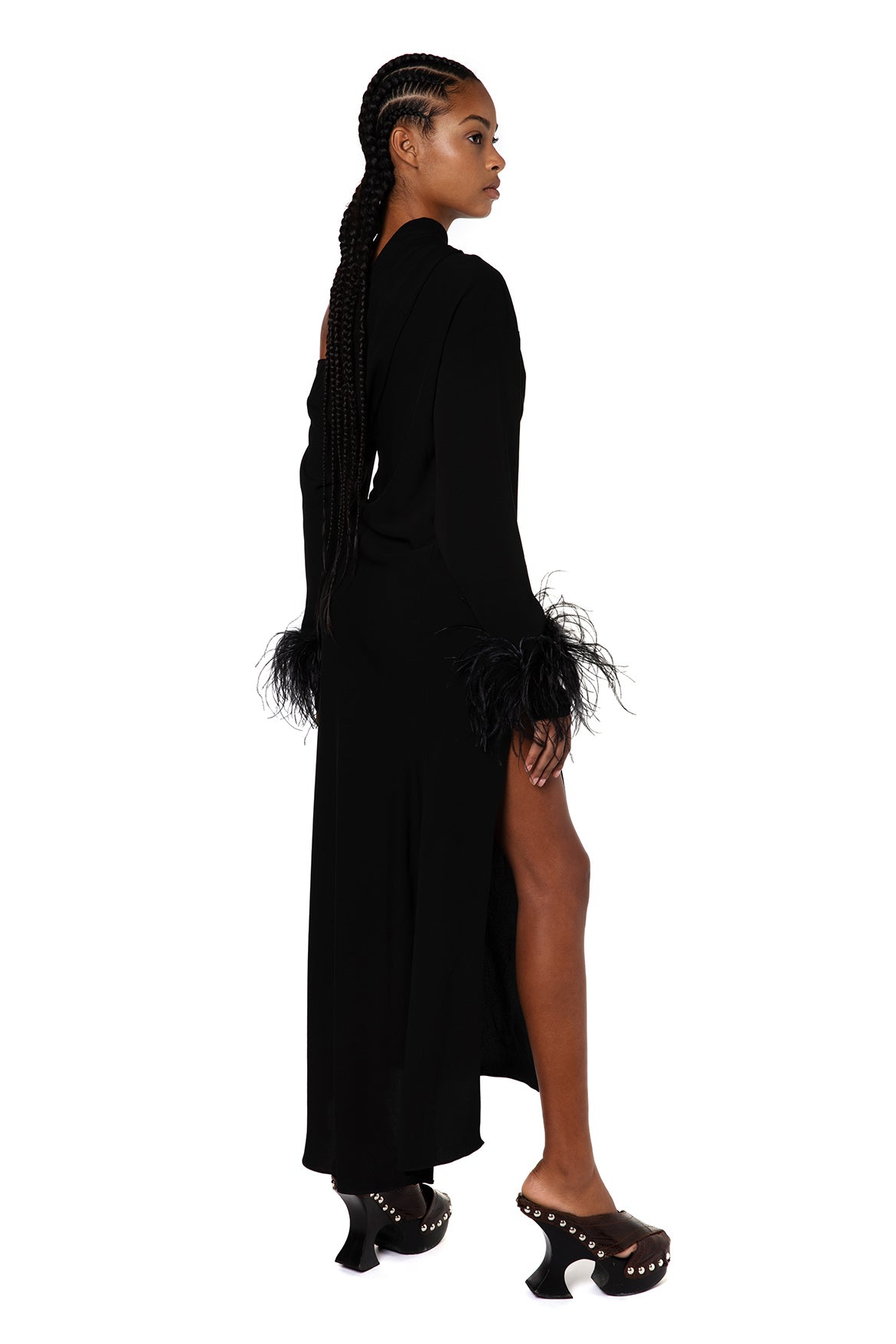MIDI DRAPED DRESS WITH OSTRICH FEATHER CUFFS