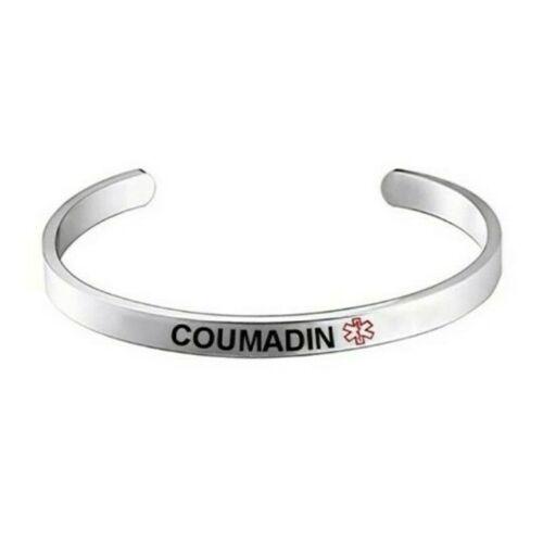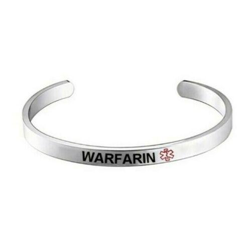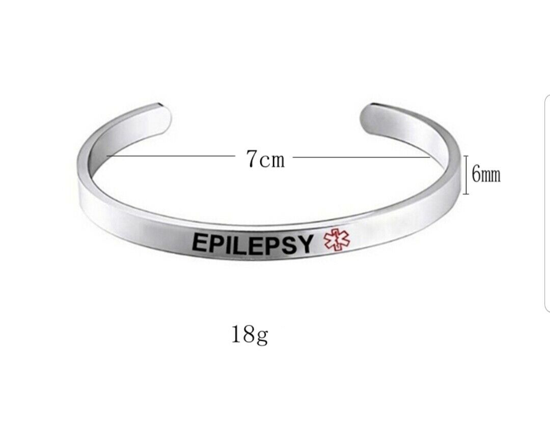 These lovely stainless steel bangles are a lovely and discreet piece of medical jewellery. Currently available in 7 medical alert options. Alert Options: Warfarin, Epilepsy, Pacemaker, Blood Thinner, Type 1 Diabetes, Type 2 Diabetes and Coumadin.Height: 6cmWidth: Adjustable wrist size (see sizing photo)