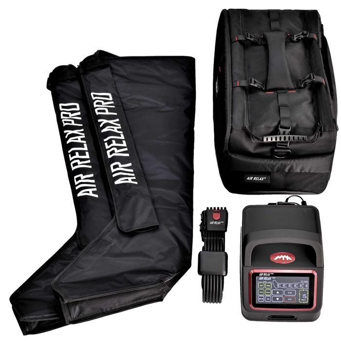 Target the entire lower body with this comprehensive PRO package 6 tripple layered chambers with auto pressure sensors 18 pressure levels ranging from 40-170mmHg Choose from 4 modes, chamber isolation and 5-95 minute session time Designed with a touch screen, deflate mode and dual voltage (110-240V) Comes with a high quality large travel bag for safe storage and transport Can be used remotely with the optional Samsung battery pack for 2-3 hours Package includes: Air Relax PRO Compressor + right & left leg / boots + hips / shorts + carry bag Two year warranty as standard The PRO Leg & Hip Recovery System & Bag package is a comprehensive package for many athletes, clubs and physiotherapists as many people benefit from recovery therapy in the lower body region to help with their performance. The high quality compression shorts (hips) target quads, hamstrings, glutes, obliques, hip flexors, lower back and abdomen, whilst the leg sleeves cover the entire limb from groin to toes. The compressor unit comes with many options which are controlled from the 5.5″ touch screen, including 18 pressure levels, 4 compression modes, chamber isolation, deflate mode, and time range from 5 to 95 minutes to customise your session to your needs. You can also use the system remotely with the optional 5,000mAh/72Wh Samsung Batter Pack to recover when ever and where ever you need. Air Relax – PRO Leg & Hip Recovery System – Compression Shorts & Leg Cuffs & Bag – Professional Sports Therapy Supplies – Specialist Equipment