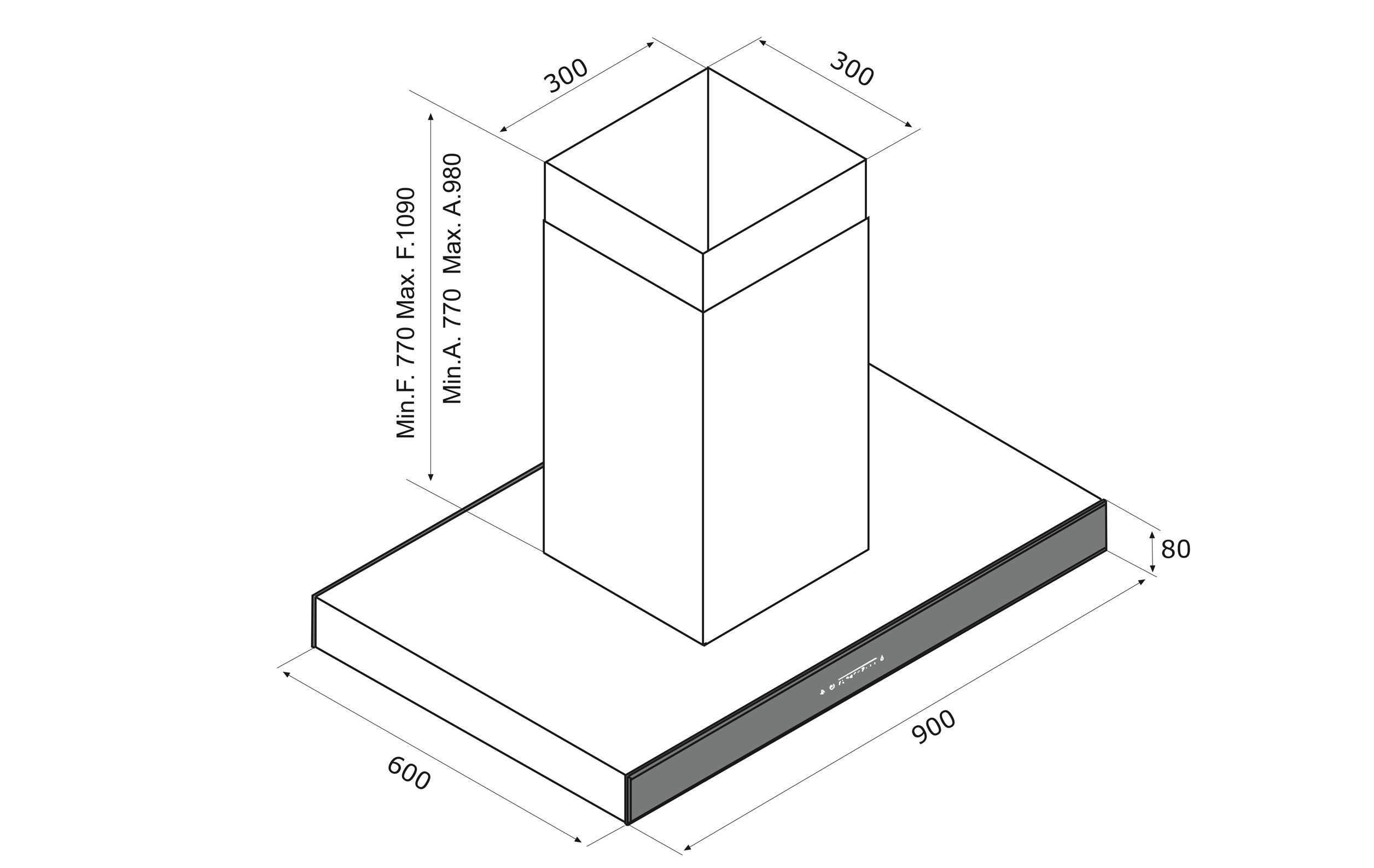 Airforce F187 90cm Island Cooker Hood – Black Airforce F187 90cm Island Cooker Hood – Black