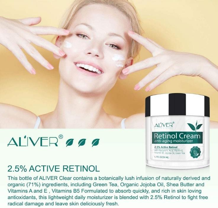 Specification: Aliver Retinol Day & Night Cream for Face, Neck & Décolleté with 2.5% Active Retinol + Hyaluronic Acid, Aloe & Green Tea – Aliver Cosmetics