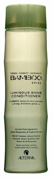 The perfect partner for your Bamboo Luminous Shine Shampoo!Bamboo Luminous Shine Conditioner is a strengthening and nourishing daily conditioner for dramatically shiny hair. The paraben sodium chloride-free formula with Color Hold(c) technology prevents dullness and provides vibrant color retention whilst the organic extracts strengthen the hair and protects it from future breakage.Features:Sulfate sodium chloride free conditionerMoisture rich formula infuses hair with shine enhancing vital nutrientsAnti-oxidants prevent free radical damage that can weaken hair causing loss of shineHair feels silky and looks dramatically shinerProtects colourEco-Certified, Fair-trade compliant Certified Organic IngredientsFree of sulfates, sodium chloride, parabens, phthalates, synthetic color, mineral oil, petrolatum and PABAKey ingredients:Organic bamboo extract: Immediately boosts hair s intrinsic strength, flexibility and sustainability for stronger, healthier, better-performing hairOrganic Indian gooseberry: Nourishes hair with vital nutrients, replenishes moisture and weightlessly coats hair with a veil of mirror-like shine for healthy hair with exceptional luster. Has the highest content of vitamin C in any naturally occurring source which help to prevent oxidative damage that can weaken hair and cause loss of shine.How to use: After rinsing shampoo, massage throughout wet hair. Rinse thoroughly.