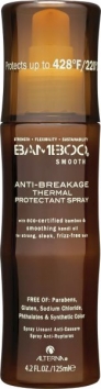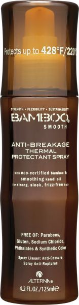 Bamboo Smooth Anti-Breakage Thermal Protectant Spray is clinically proven to reduce breakage by 87%*. Instantly repairs, strengthens smooths strands while providing maximum anti-breakage protection from heat styling tools. Provides an exceptionally high level of thermal protection of up to 428 deg. F.* Clinically proven to prevent breakage up to 87% and provide thermal protection up to 428 deg. F / 220 deg. C.Directions For UseApply to freshly cleansed, towel dried hair prior to styling. Can be used with any Bamboo Styling product.