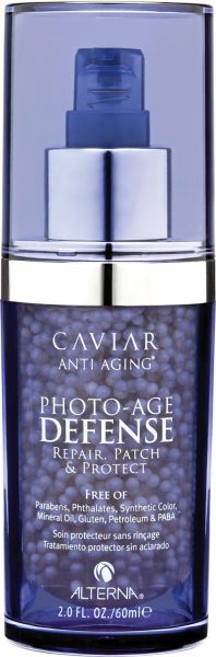 Maintain younger looking hair while protecting it from harmful elements with the Alterna Caviar Photo-Age Defense. Use it before applying other styling products for an optimal result. The coating that it gives to your hair protects it from the harmful UVA/UVB rays, keeping that youthful glow and shine.What else you need to know:Key product benefits are derived from the formula s micro-emulsion beads. The beads contain powerful technologies that activate at the point of emulsification, locking in essential ingredients (fatty acids, vitamins, minerals and proteins) and locking out damaging light sources.Suggested Usage:Apply throughout towel-dried hair prior to applying other styling products.Style with other products as desired.