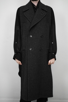 Ann Demeulemeester – Mens – Coat – Grey / Black – Linen / Wool – Grey Front Panel – Double Breasted Buttons