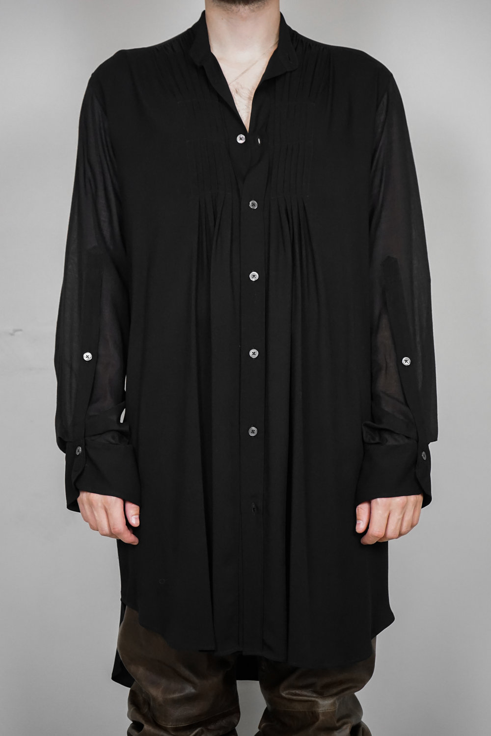 Ann Demeulemeester – Mens – Shirt – Black – Long Sleeved – Rayon-Cotton & Cashmere – Gathered Front