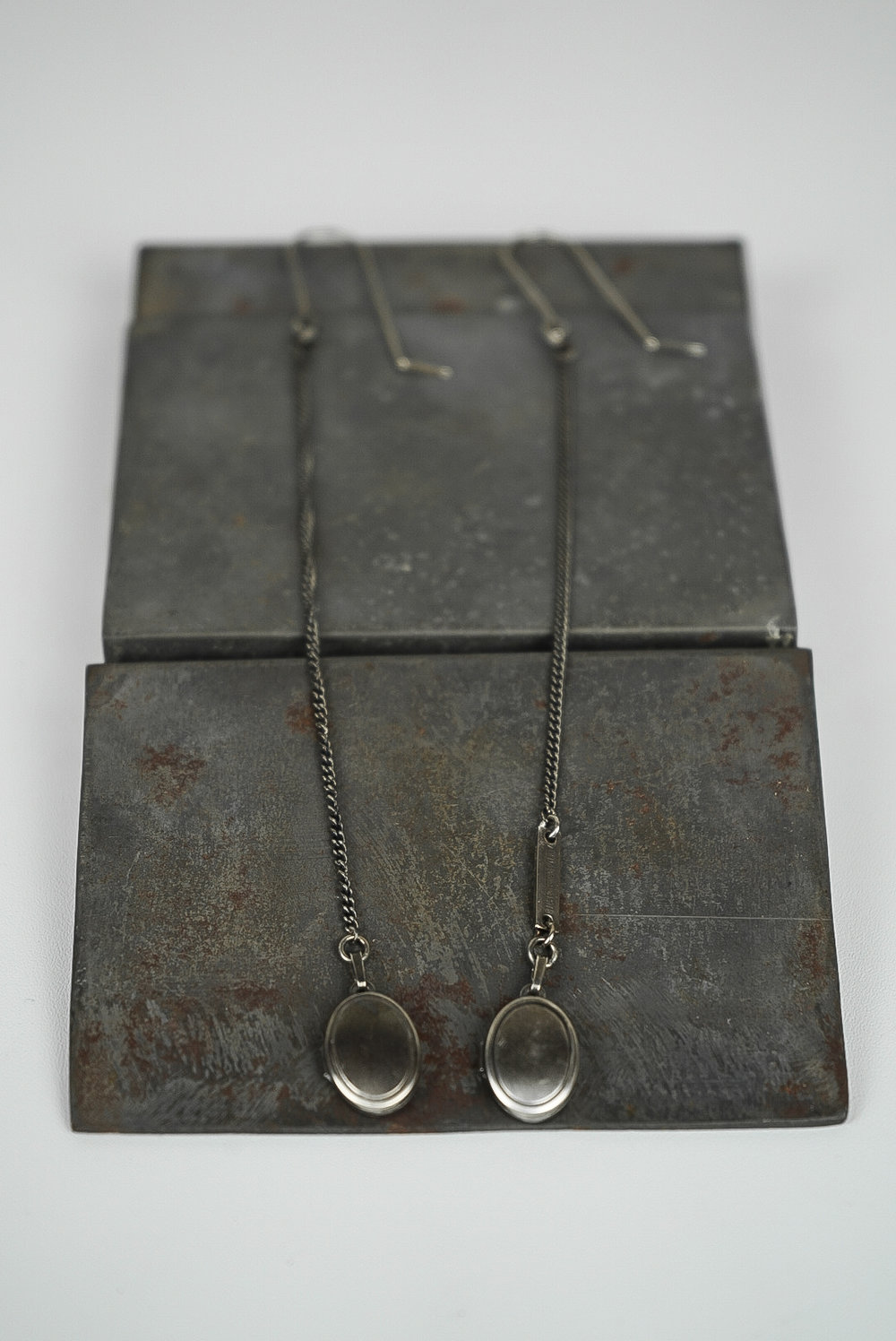 Long silver earings from Ann Demeulemeester, featuring fine silver medaillons. Silver 100%. Made in Germany.