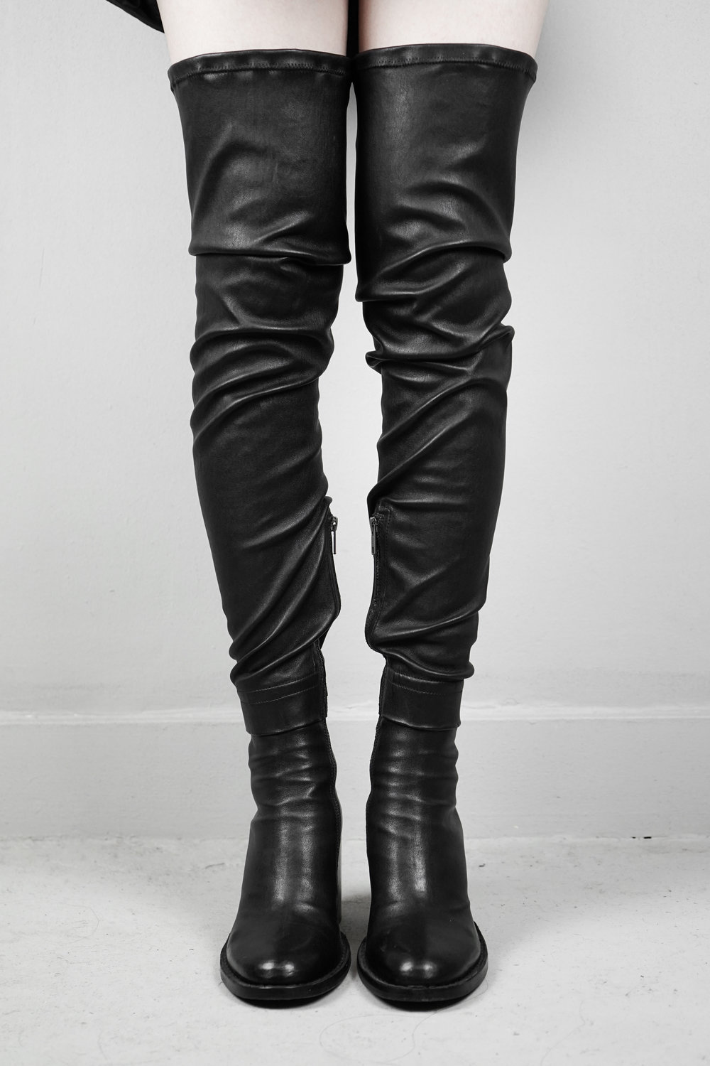 Specification: Ann Demeulemeester – Womens – Thigh High Boots – Black – Leather – Almond Toe – Chunky Mid Heel
