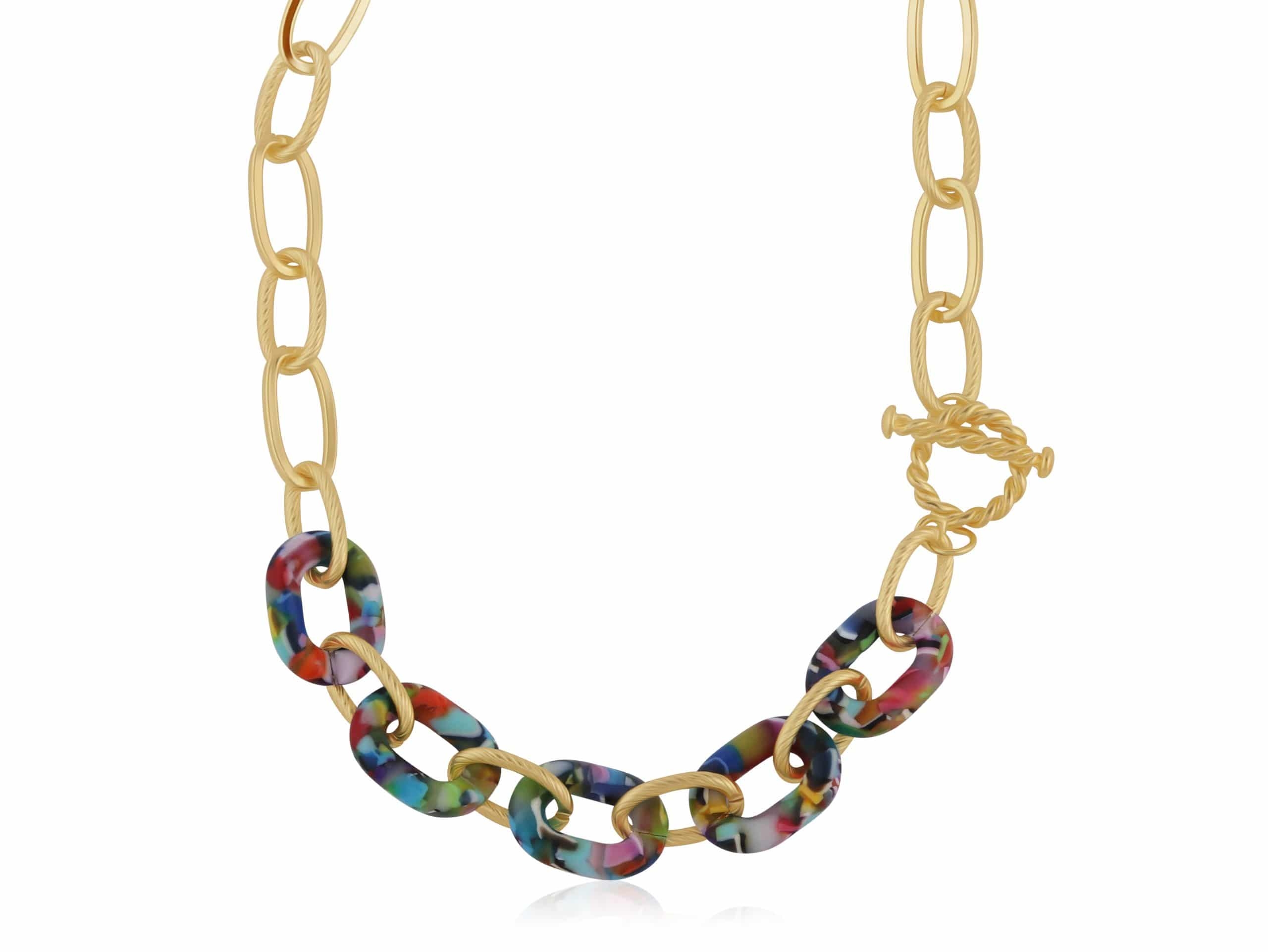 Specification: Anne 2 Tone Large Resin Metal Necklace in Beige – Big Metal London