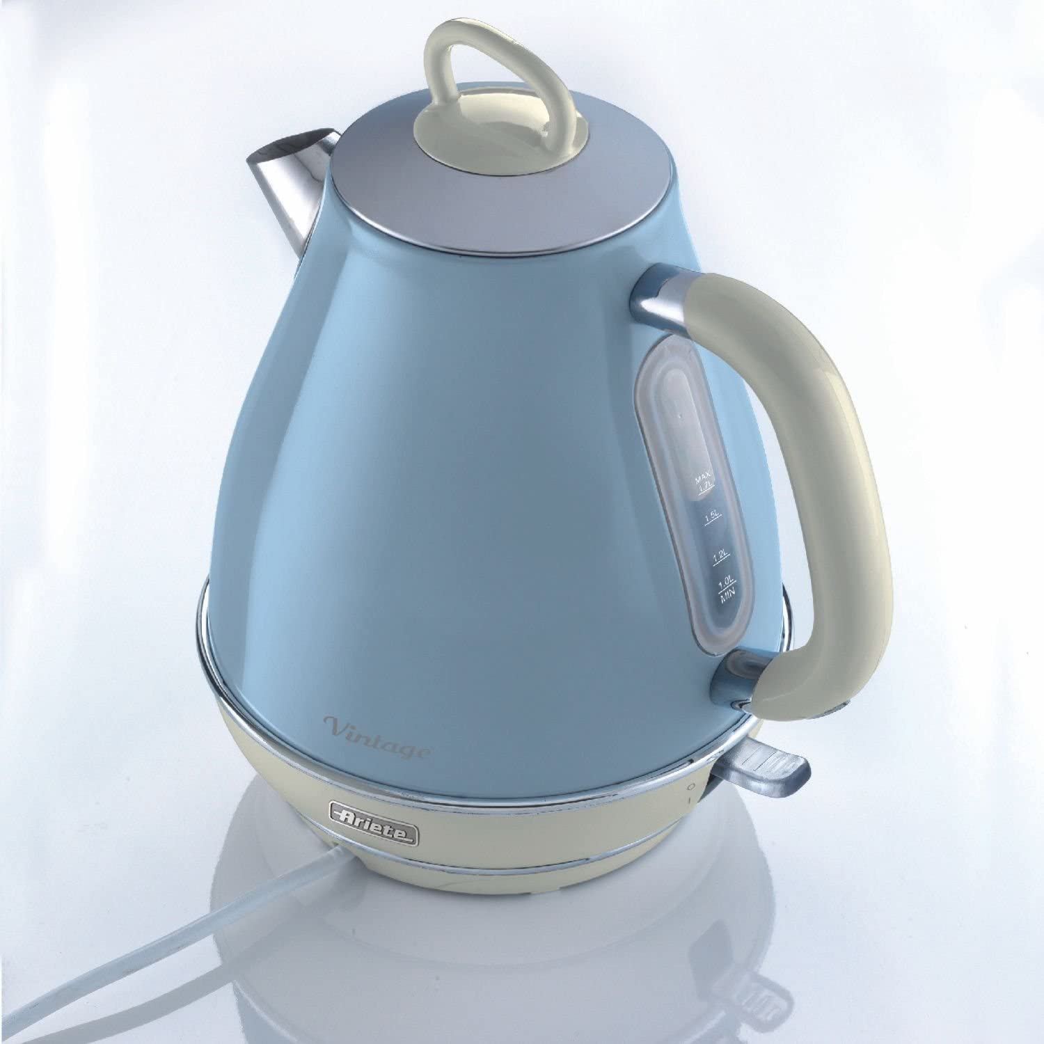 Vintage Jug Kettle Giving your kitchen that vintage look with the ariete range a part of the de’Longhi group with a range of colours from cream, pastel green and pastel blue “Retro look to add a little character to your home” Cordless with 360° base Cold safety outer surfaces and support base Auto switch-off Removable anti-scale filter Ariete Vintage Pastel Blue Jug Kettle 1.7lt
