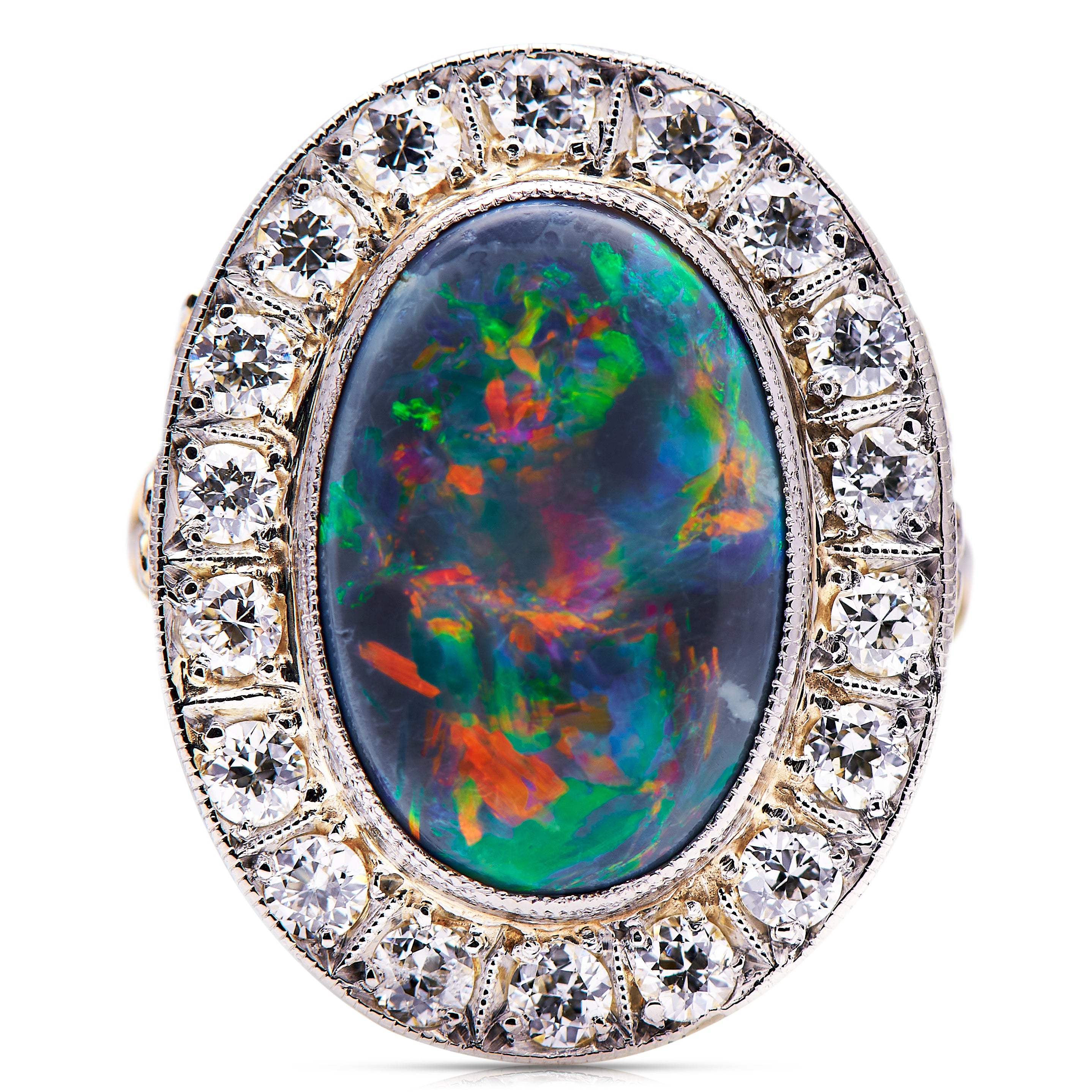 Art Deco | Black Opal and Diamond Cluster Ring – Vintage Ring – Antique Ring Boutique