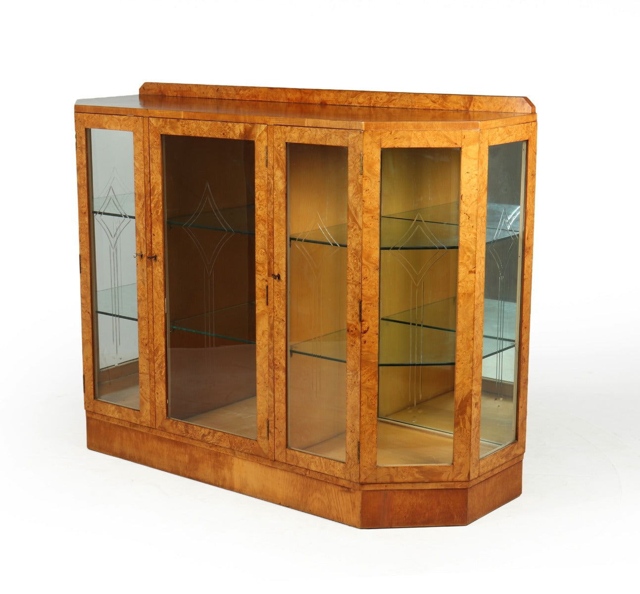 Specification: Art Deco Display cabinet in Burr Maple – The Furniture Rooms
