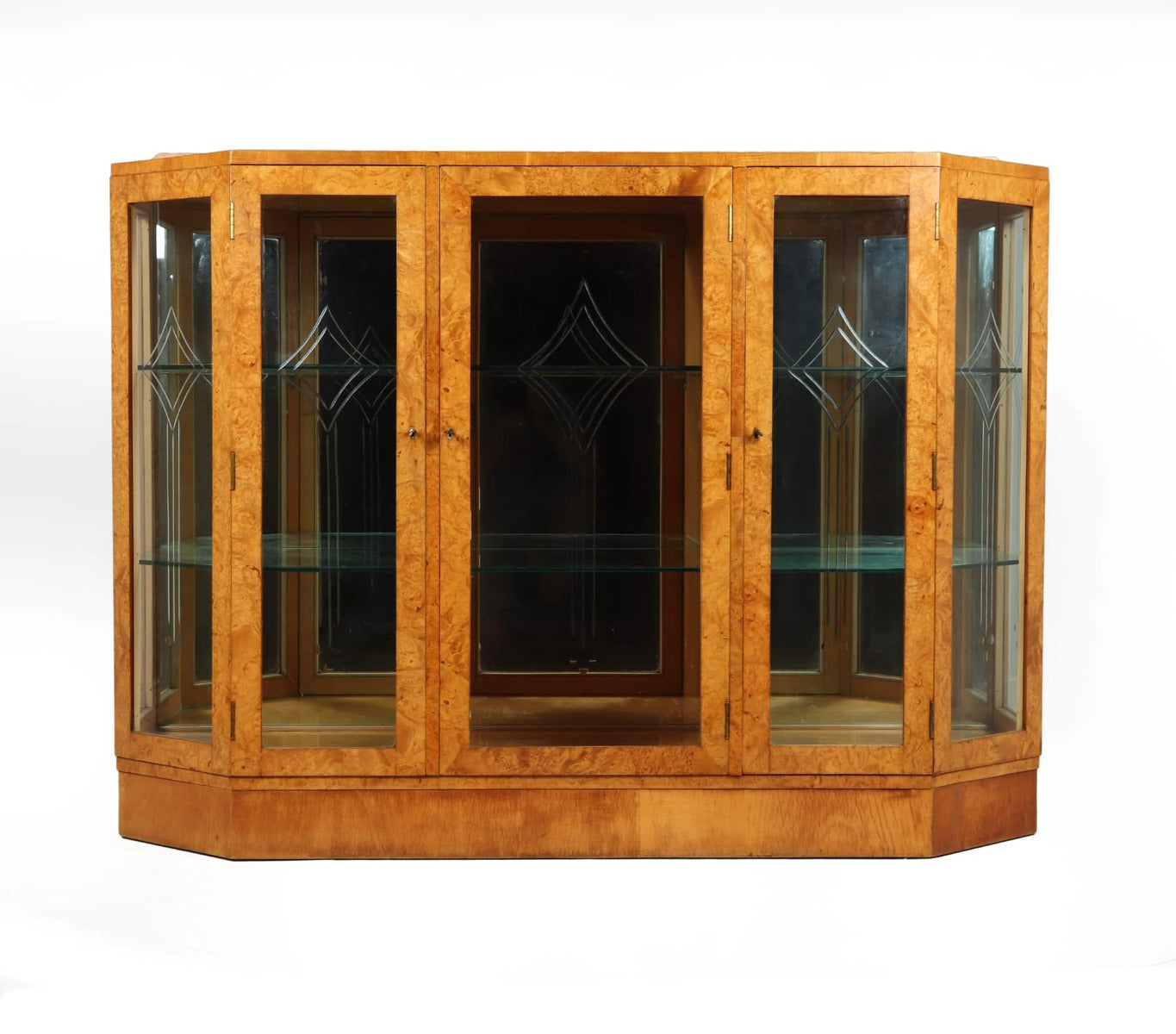 Art Deco Display cabinet in Burr Maple – The Furniture Rooms