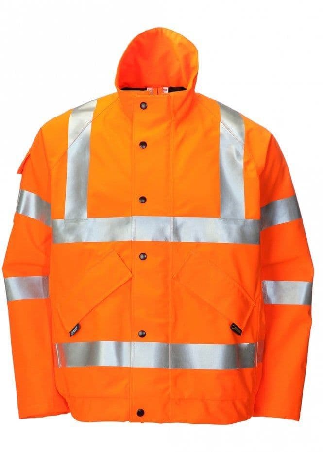 High performing hi vis GORE-TEX waterproof bomber jacket that is approved and worn by Network Rail. The GORE-TEX Fabric provides full durable, waterproof and windproof protection while offering the highest levels of breathability providing the ultimate protection from both warm, wet climates and extreme wet weather conditions. The quilted lining provides extra protection against cold conditions on long day and night shifts. This workwear coat will perform beyond expectations and last several years in hard end use. Approved to BS EN ISO 20471 Class 3, EN 343 3:3, RIS-3279-TOM, EN ISO 136882-layer GORE-TEX, outer fabric 100% polyester with ePTFE membrane fully seam sealed The outer fabric is fully seam sealed with proprietary GORE-SEAM® Tape to provide ultimate full waterproofness to meet and exceed the EN 14360 Protective Clothing Against Rain test with no leakage after extended use simulation Every garment is manufactured using Ballyclare’s expert knowledge and over 30 years of WL Gore & Associates garment design expertise Best in class with proven “fitness for use” High visibility orange background fabric with heat applied 50mm reflective taping Double storm flap front fastening to ensure avoid water ingress The collar is shaped and contoured for compatibility with hard hats and can be combined, when necessary, with an attachable hood, available to order separately (HV161) Proven industrial laundering to ISO 15797 and home washing at 40°C Frequent washing to remove dirt and contaminates combined with tumble drying will prolong the life and use of this garment, maximising value of investment