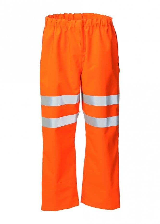High performing women’s hi vis GORE-TEX waterproof trousers that are approved and worn by Network Rail. The GORE-TEX Fabric provides full durable, waterproof and windproof protection while offering the highest levels of breathability providing the ultimate protection from both warm, wet climates and extreme wet weather conditions. These work trousers will perform beyond expectations and last several years in hard end use. Approved to BS EN ISO 20471 Class 3, EN 343 3:3, RIS-3279-TOM, EN ISO 136883-layer GORE-TEX, outer fabric 100% polyester with ePTFE membrane fully seam sealed Designed and cut with the female shape in mind The outer fabric is fully seam sealed with proprietary GORE-SEAM® Tape to provide ultimate full waterproofness to meet and exceed the EN 14360 Protective Clothing Against Rain test with no leakage after extended use simulation Every garment is manufactured using Ballyclare’s expert knowledge and over 30 years of WL Gore & Associates garment design expertise Best in class with proven “fitness for use” High visibility orange background fabric with heat applied 50mm reflective taping Elasticated waist with drawstring to ease pulling on and off Side access to under garments for easy and quick access to belongings Zipped leg openings to enable ease of access to boots Proven industrial laundering to ISO 15797 and home washing at 40°C Frequent washing to remove dirt and contaminates combined with tumble drying will prolong the life and use of this garment, maximising value of investment