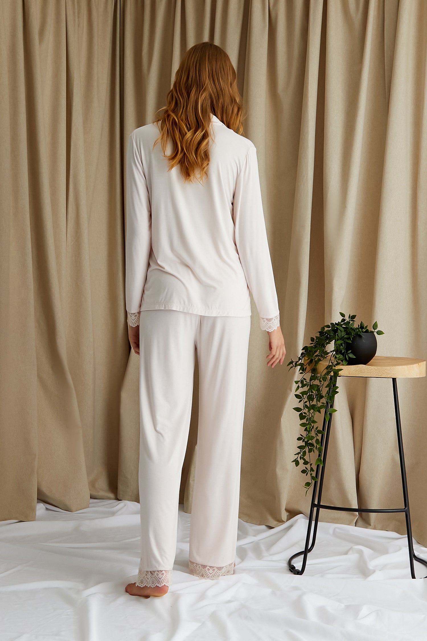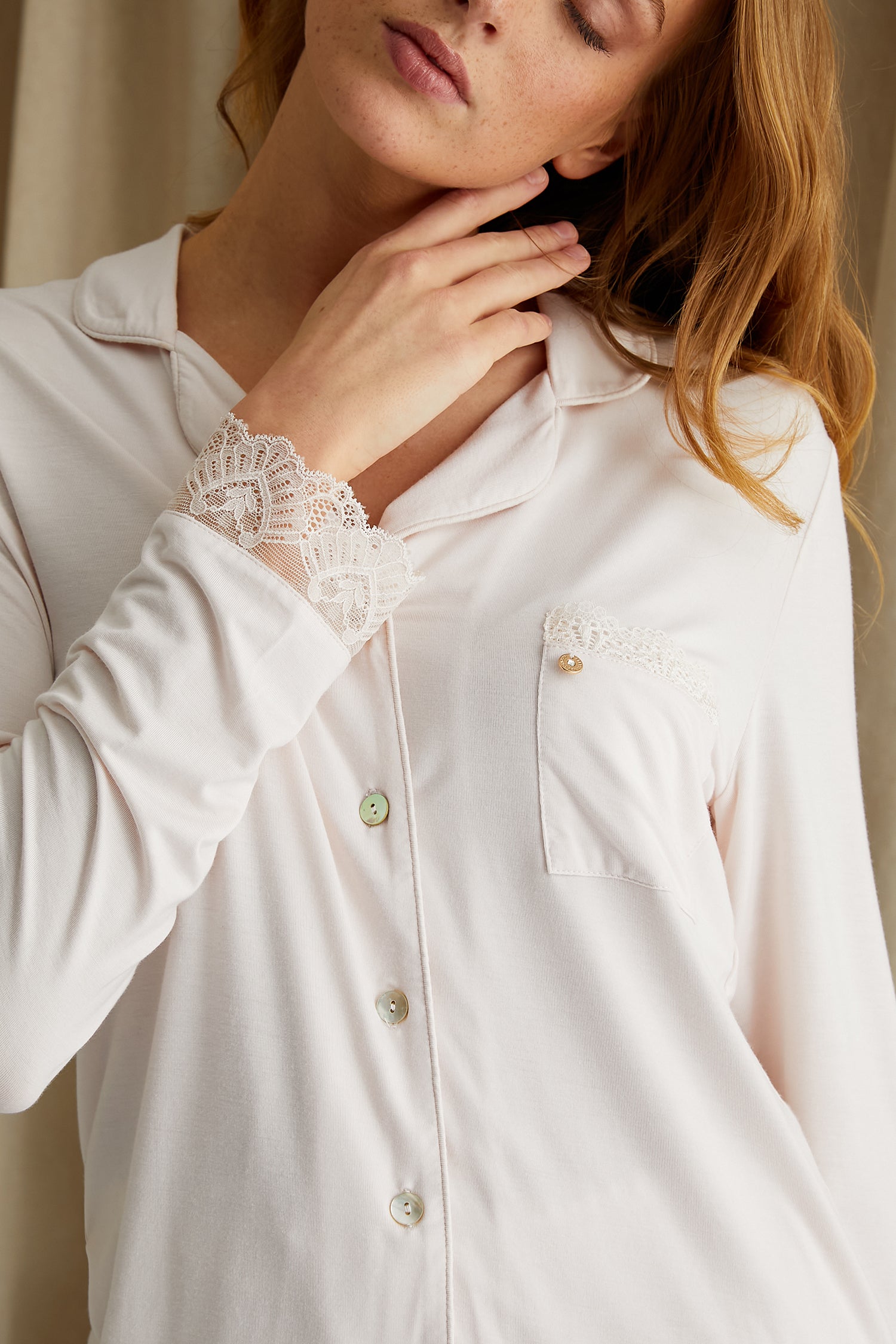 Specification: Bamboo Lace Pyjama Set in Powder Puff | Pretty You London UK 20 / Powder Puff