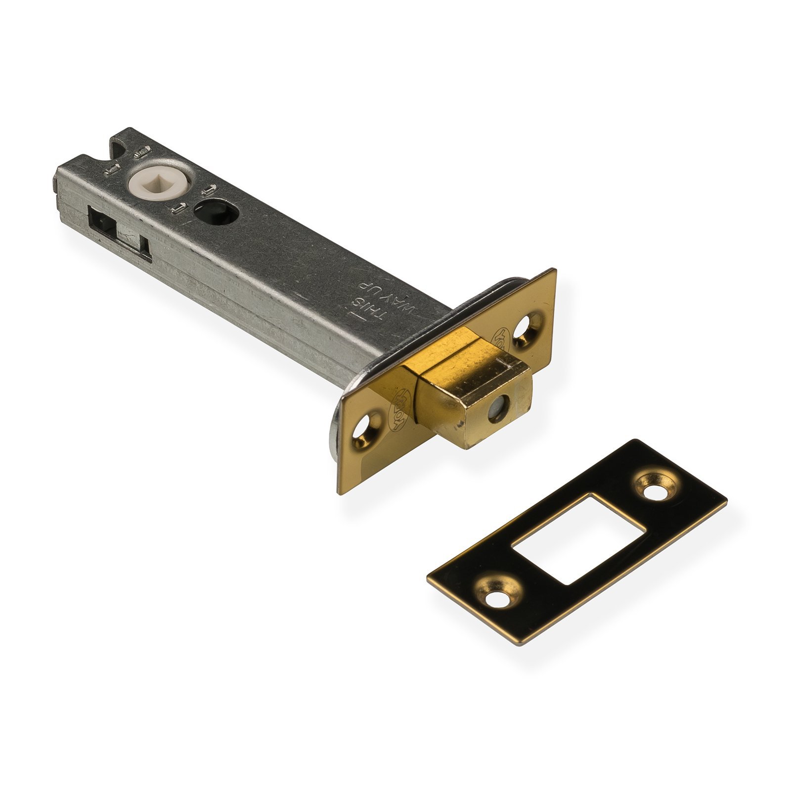 Bathroom deadbolts are typically used to provide privacy without the use of a key. Deadbolts are generally used when fitting a door knob or lever on rose handle, by combining what is essentially two different mechanisms you are free to locate them where you feel most appropriate, this is in stark contrast to a traditional bathroom mortice lock where the position is set.åÊDeadboltsåÊare generally used in conjunction with a bathroom turn and release catch. On the inside of the door there will be a knob that operated the bolt, on the outside is the indicator withåÊslot, this åÊallows access to the room without having to force the door.Our bolts have a backset of 80mm, whichåÊis the same as our 4″ heavy duty tubular latch. The combination of the two allows the door knob and deadbolt to align perfectly. Its worth noting that when fitting door knobs the back set should be deeper than when fitting traditional lever handles, this is because with a short back set you would scrape you knuckles on the door frame when turning the knob.Our deadbolts come with two colour options, brass and antique brass as well as being supplied with all necessary fixings, we have also included a black plastic splinter guard that goes under the receiver plate, this hides away the carpenters chisel workings.We have included a technical drawing that you can access under the dimensions tab, here you will able to download a detailed PDF document.Click to download dimensions in PDF format. Click to download drawing file in DWG format.