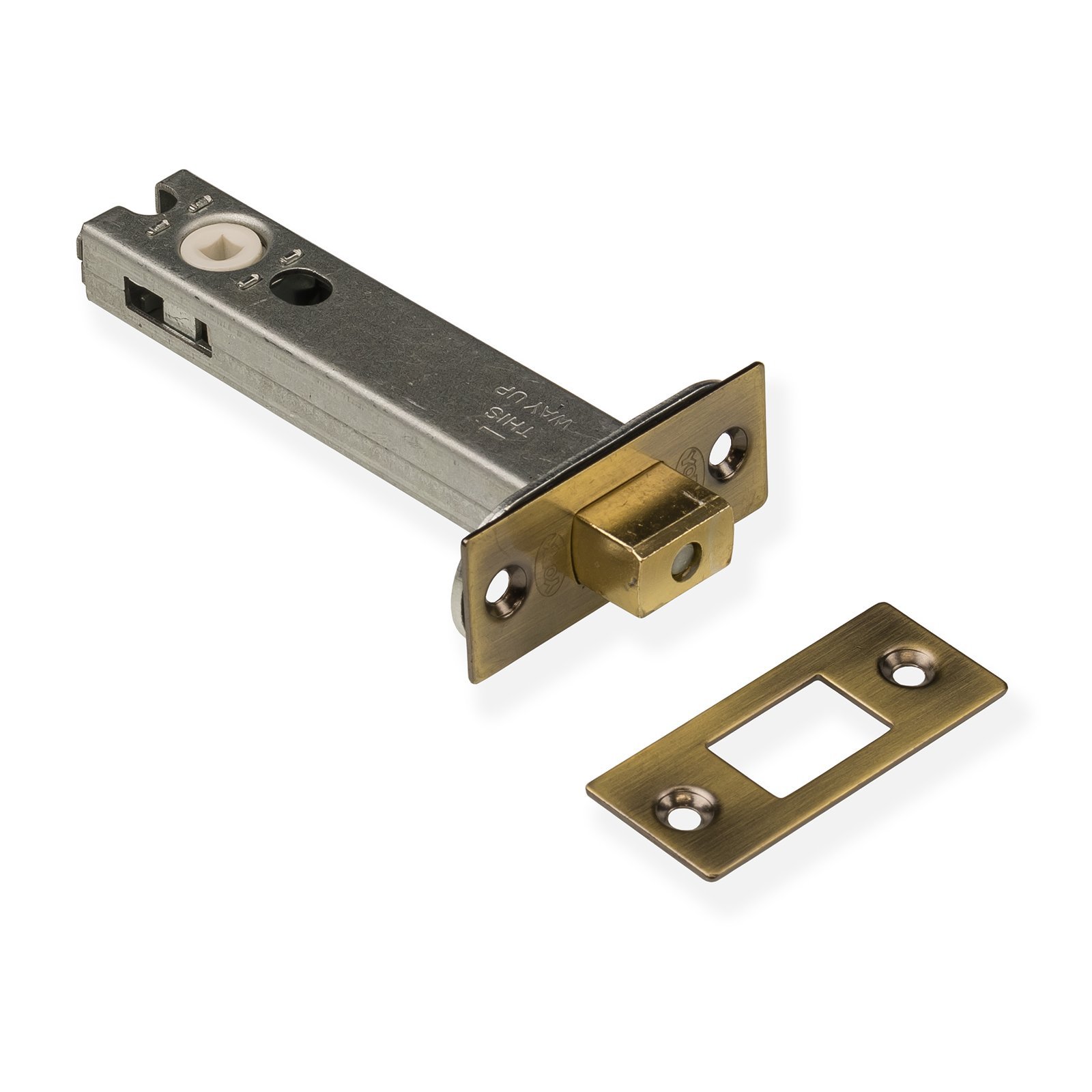 Bathroom deadbolts are typically used to provide privacy without the use of a key. Deadbolts are generally used when fitting a door knob or lever on rose handle, by combining what is essentially two different mechanisms you are free to locate them where you feel most appropriate, this is in stark contrast to a traditional bathroom mortice lock where the position is set.åÊDeadboltsåÊare generally used in conjunction with a bathroom turn and release catch. On the inside of the door there will be a knob that operated the bolt, on the outside is the indicator withåÊslot, this åÊallows access to the room without having to force the door.Our bolts have a backset of 80mm, whichåÊis the same as our 4″ heavy duty tubular latch. The combination of the two allows the door knob and deadbolt to align perfectly. Its worth noting that when fitting door knobs the back set should be deeper than when fitting traditional lever handles, this is because with a short back set you would scrape you knuckles on the door frame when turning the knob.Our deadbolts come with two colour options, brass and antique brass as well as being supplied with all necessary fixings, we have also included a black plastic splinter guard that goes under the receiver plate, this hides away the carpenters chisel workings.We have included a technical drawing that you can access under the dimensions tab, here you will able to download a detailed PDF document.Click to download dimensions in PDF format. Click to download drawing file in DWG format.