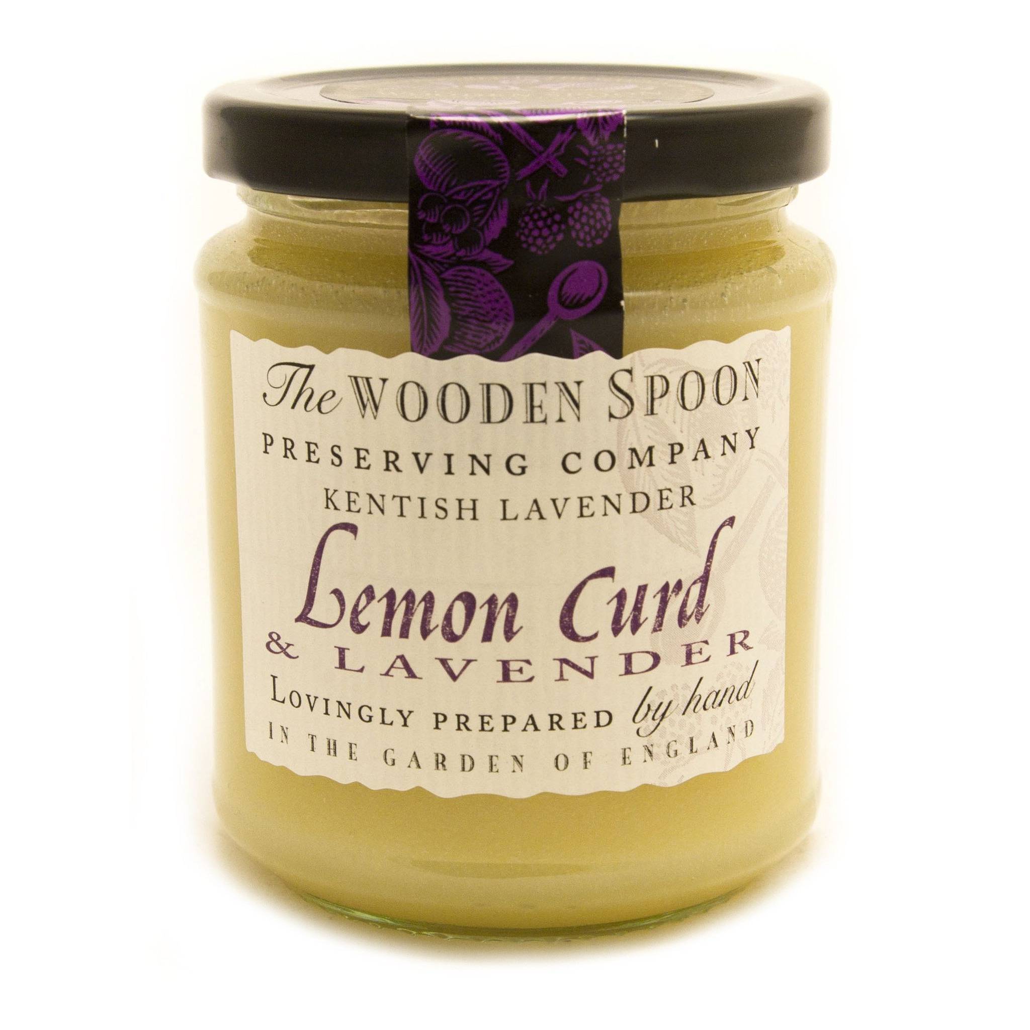 This carefully blended product is delicious used as a topping in all pastry cooking, use as a filling to sponge cakes, or spread thickly on fresh buttered bread or newly baked scones.Weight: 325gFree from gluten, artificial flavouring, or colouring.Ingredients:Sugar, lemon juice (22.5%) (sulphites), pasteurised whole egg, butter (milk), lavender essence (1%), lemon zest (