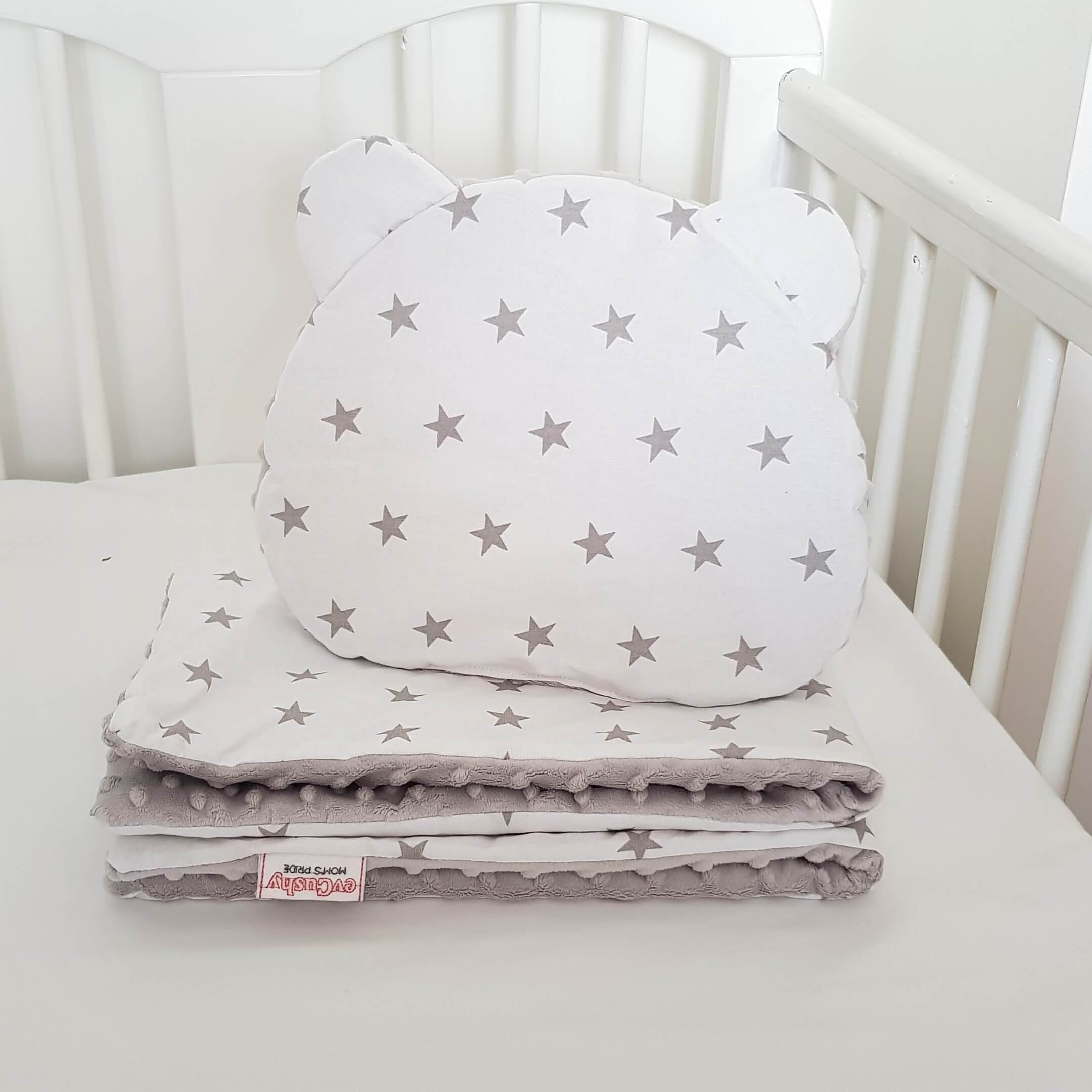 Blanket & Pillow Set Newborn Grey Stars In Pink Blue & Grey – Grey – evCushy