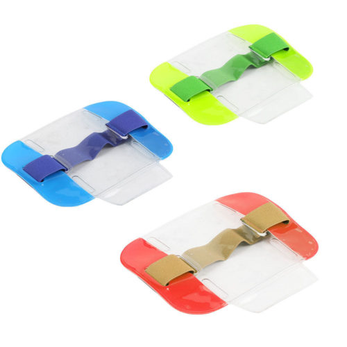 The clear PVC pocket has a protective flap to stop water entering the pocketSo your badge remains dry, clean and protected. These holders are made to ahigh specification, made from strong PVC and welded edges for a superiorfinish.Colour : Yellow / Blue / Red / Green / Orange – Blue Armband ID Badge Holder