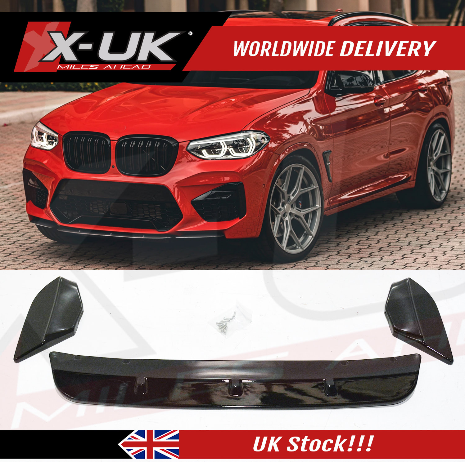 Our 3 piece front splitter lip for the BMW X3M is manufactured from ABS plastic.