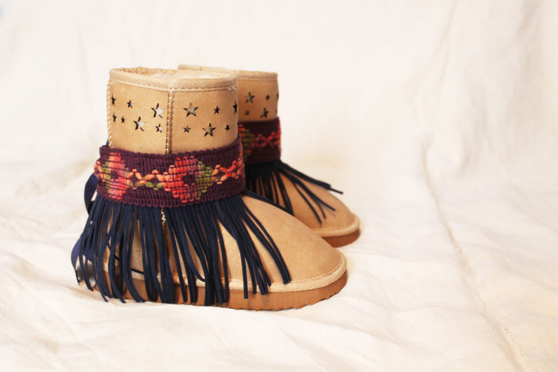 One size: Approximate measurements 30 × 5 cms. It is tied with bow so is therefore adaptable to any boot.