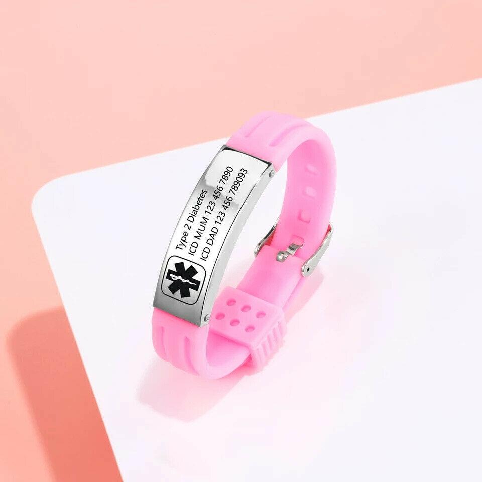 Specification: Boston Pink Silicone Medical Alert Bracelet