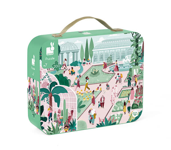 With this beautiful cardboard puzzle your child will explore a botanical garden, while developing their memory and dexterity. In its pretty suitcase, this puzzle will be easy to transport thanks to its fabric handle.