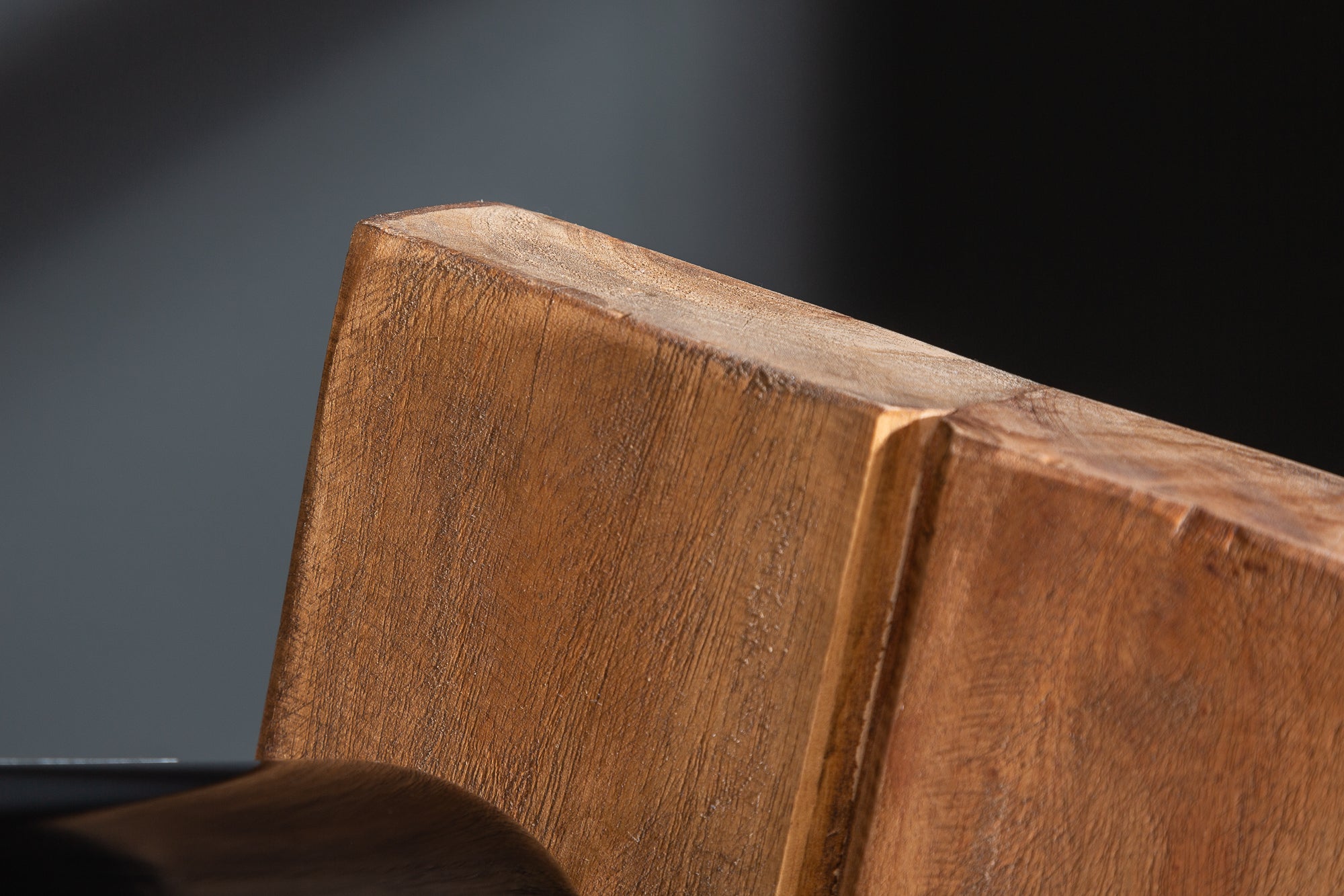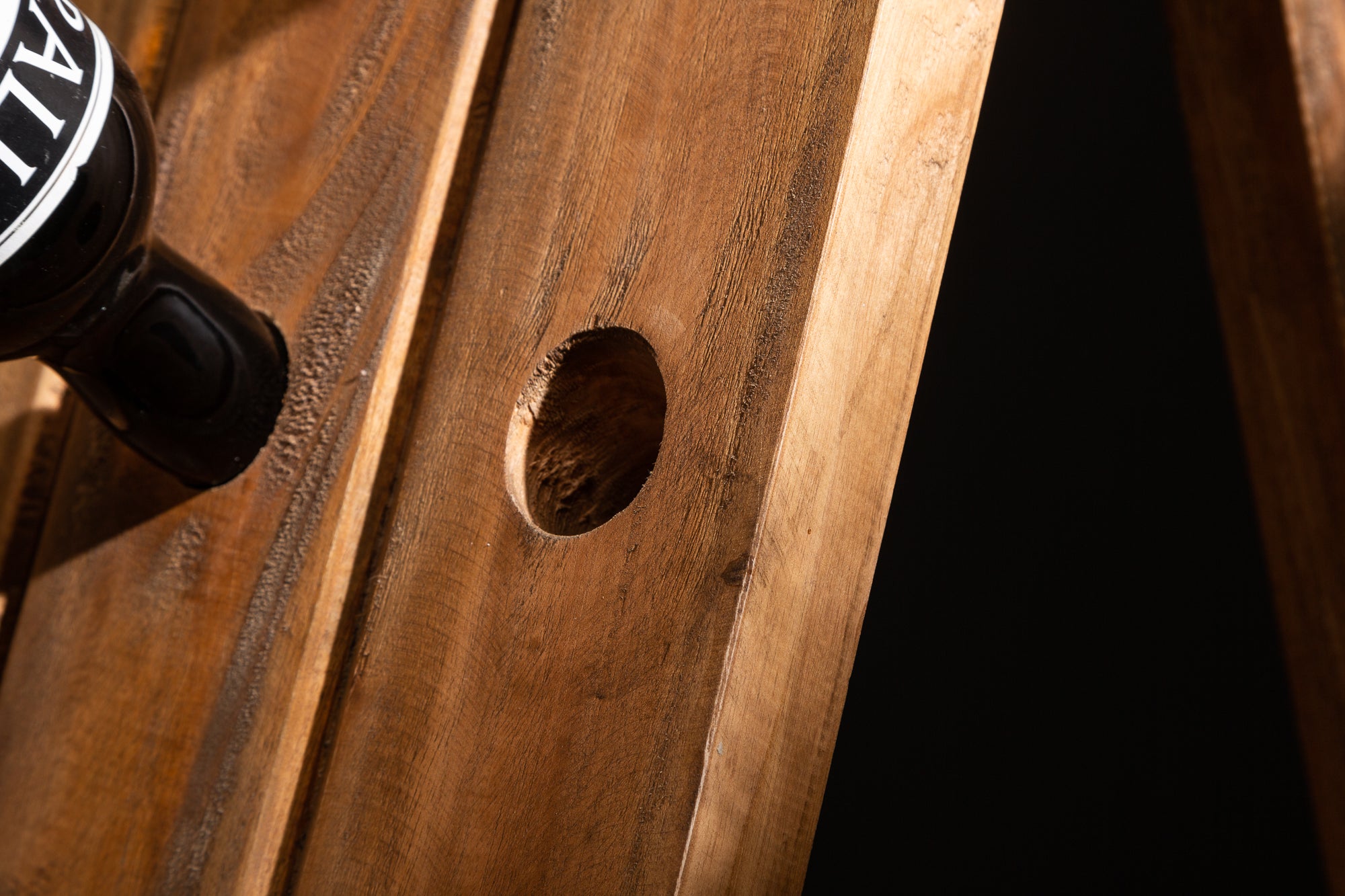 Design bottle stand from the Hemingway series is made of recycled wood with small cracks, fissures and other imperfections that create a unique, rustic look. It is a solid construction, very durable and easy to maintain. The stand provides space for storing up to 25 bottles and it is a brilliant way to display your collection of fine wines. You can place it in the corner or next to the sofa and it will definitely catch eyes of your guests.
