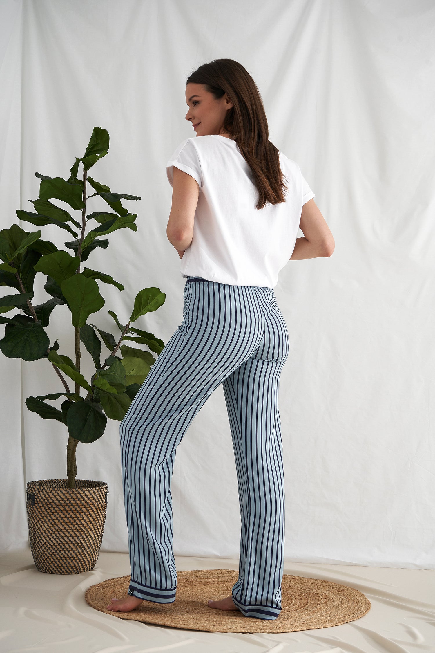Boyfriend Stripe Trouser Blue | Women’s Pyjamas | Pretty You London UK 14-16 / Duck Egg/Navy