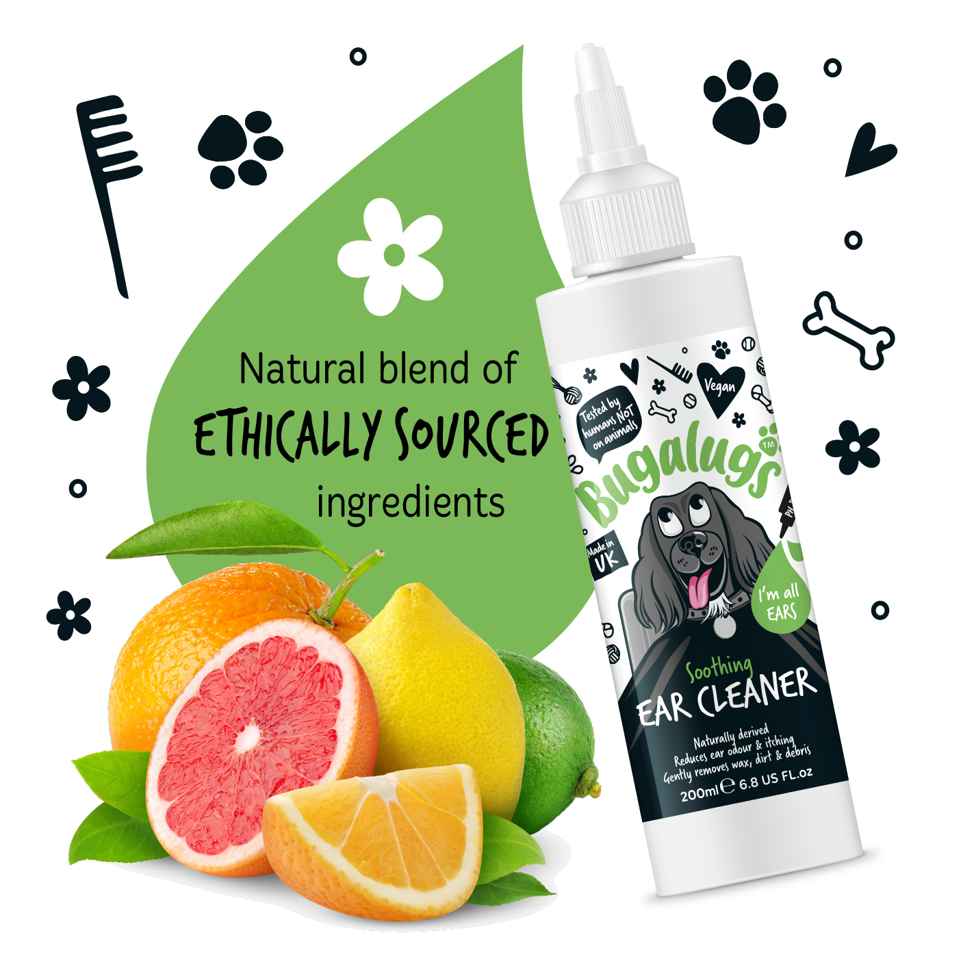 Bugalugs Ear Cleaner is the perfect addition to your dogs grooming routine. Our naturally derived gentle formula soothes and relives itchy ears, reduces ear odour and removes wax and dirt and helps to prevent infections. Our specialist formula delivers fast results to keep ears clean and in great condition. Our Ear Cleaner is safe and clean and is non-toxic, free from alcohol, parabens, silicones, SLES, SLS, DEA & enzymes. With our easy sensitive ear application its easier than ever to to use on your dogs or cats and saves you time and your pet unnecessary stress. At Bugalugs we are committed to animal welfare, which is why we never test any of our products on animals. so, with your next purchase of dog ear wash, you can feel safe in the knowledge that you’re dealing with a brand you can trust.