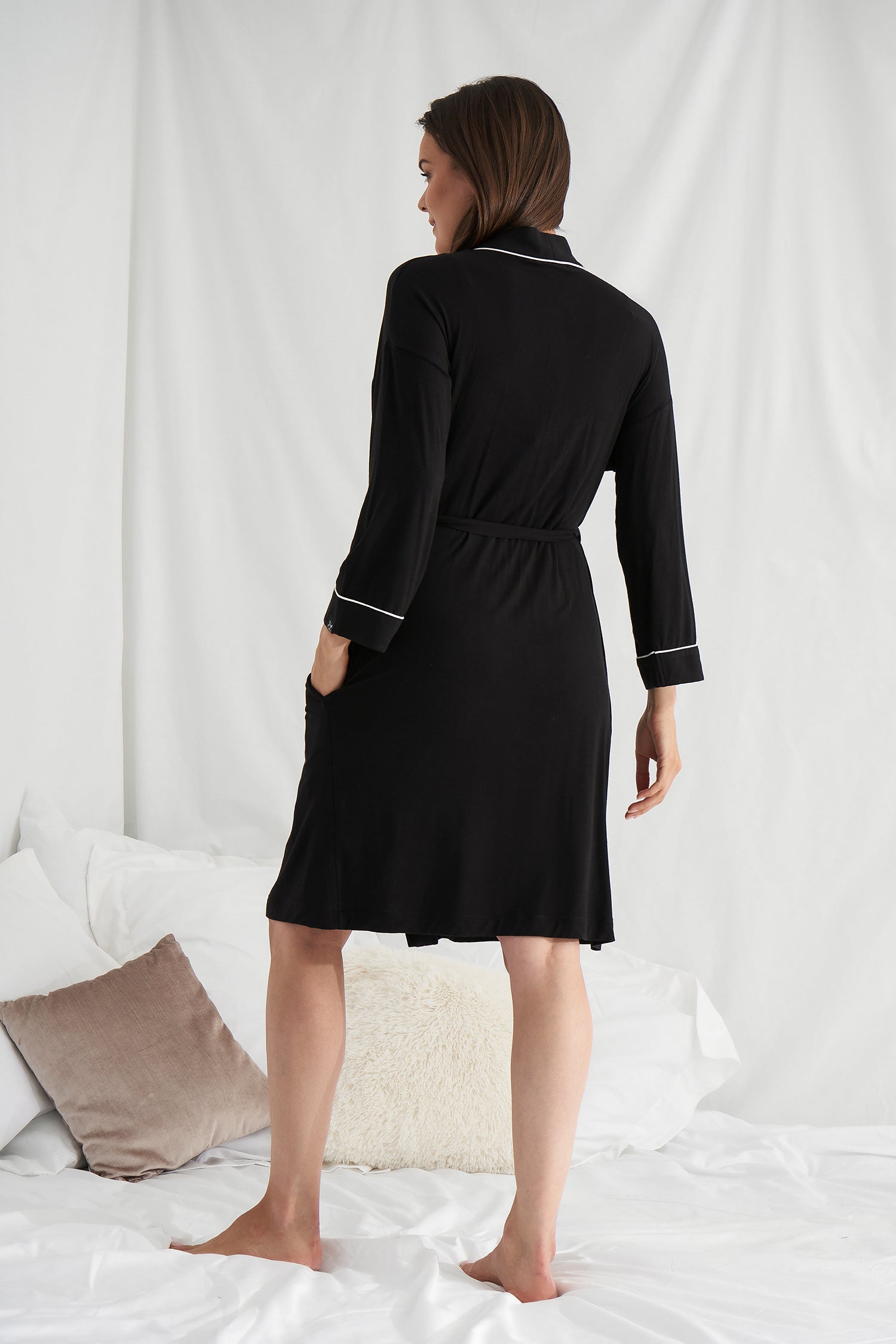 The kimono robe is hypoallergenic, anti-bacterial, breathable, eco-friendly and thermoregulating. This bamboo dressing gown has a secure tie and is beautifully soft.