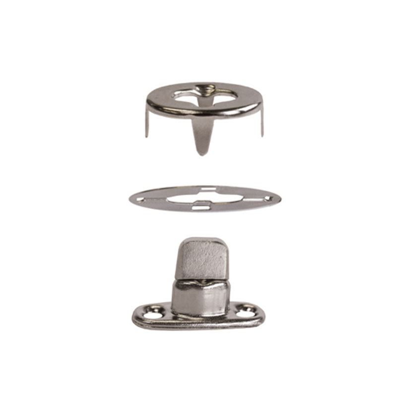 Turn Buttons -Turn Button Fasteners – 25pcTurn Buttons are probably the most common fasteners used on boat canopies as they can not be opened by accident. They require force to twist the button on the stud which allows the release of the socket.These are the fastener are set in the holes made by the Turn Button Cutter Osborne No. 4100.Kit is composed of 25 pcs. of each component shown. No. K-4110 – Turn Buttons Kit Weight per box 0.340kg UPC No.14265 25 Buttons per box C.S. Osborne – Turn Buttons -Turn Button Fasteners – 25pc – Silver Colour – Textile Tools & Accessories