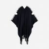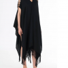Cali Pima Cotton Beach Kaftan Black – One Size – Poncho – Handmade Tassels – Drop Shoulder – Aessai