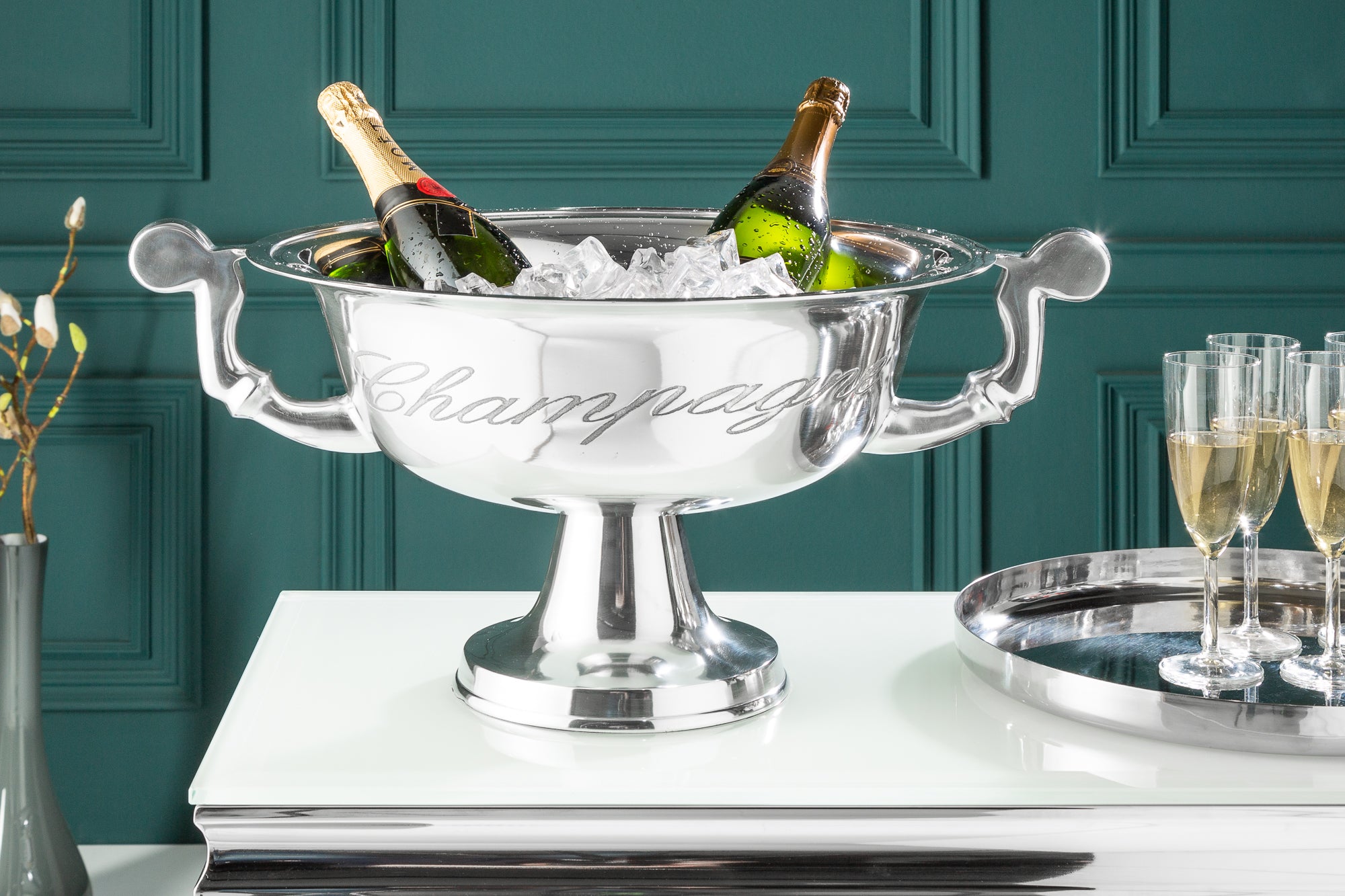 With this bottle cooler, you will be the star of the evening at every party.This silver champagne cooler with its trophy look cools your bottles in a unique way. The cooler is made of aluminium and coated with a silver aluminium layer.