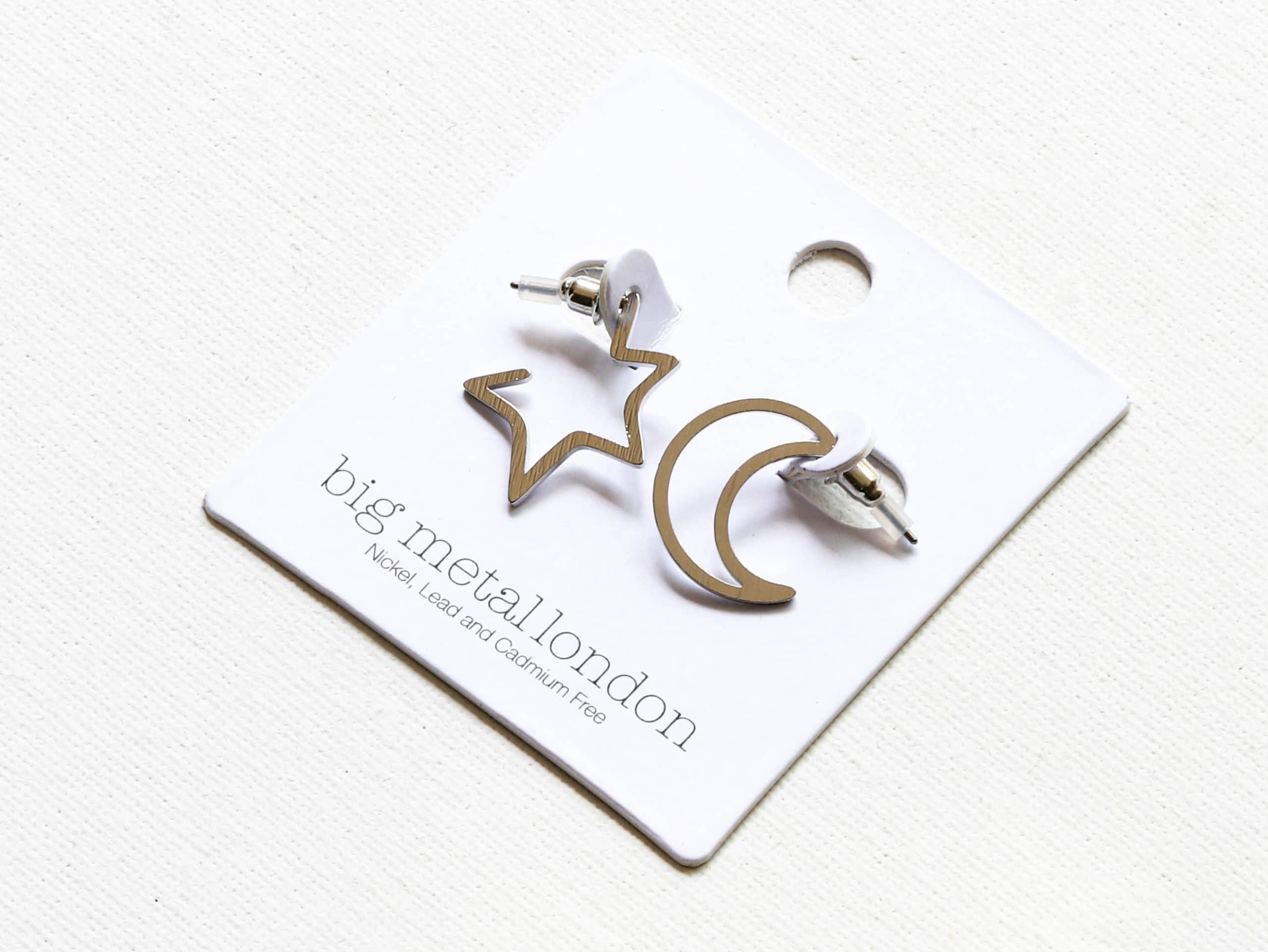 Chiarra Moon and Star Mismatched Earrings in Silver – Big Metal London
