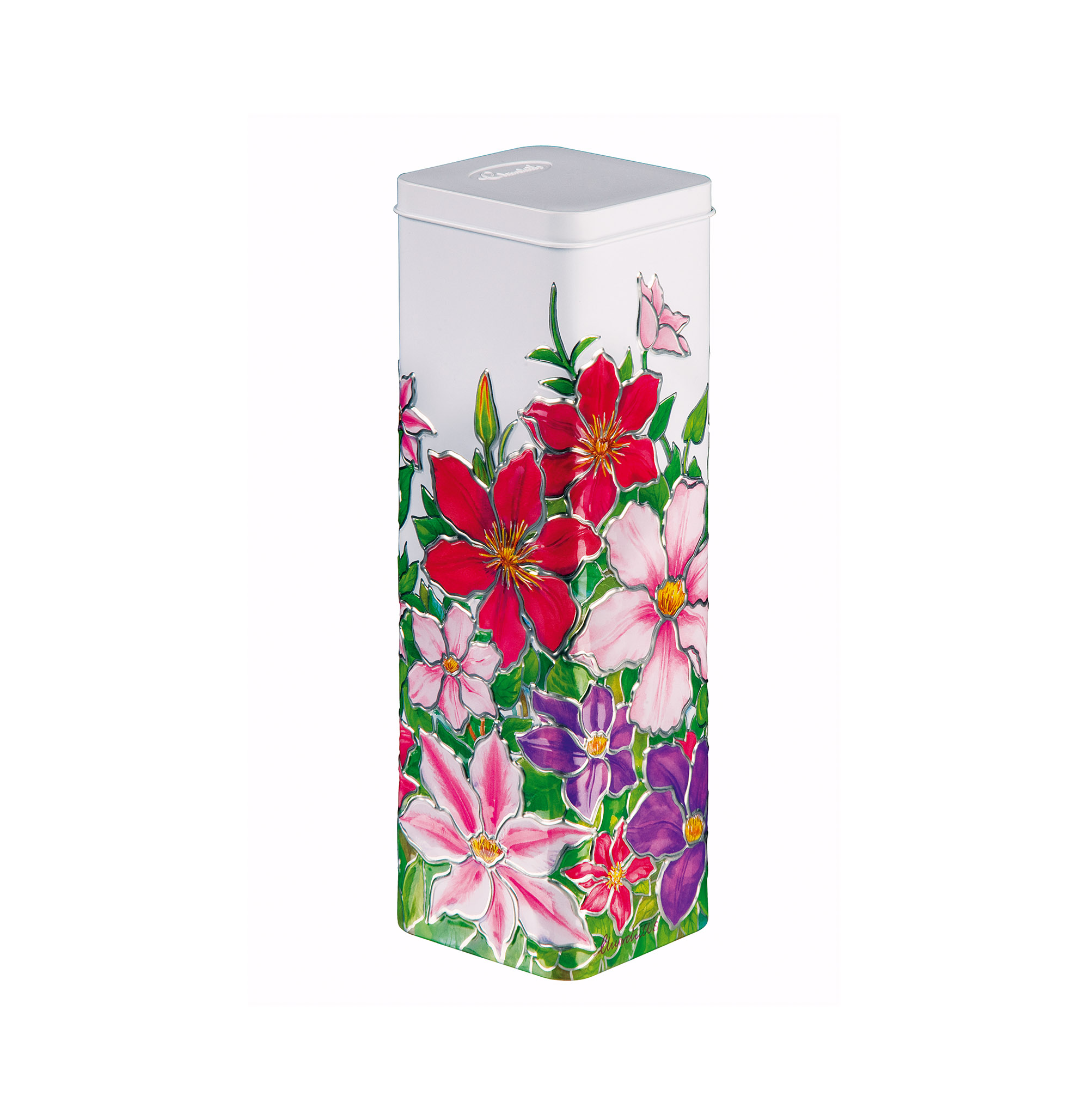 An array of vivid floral colours sets this tin apart from all others. Exquisitely decorated using a rich blend of reds, pinks, purples and greens, Clematis portrays a path of flowery shoots as they climb towards the sky. If you like this why not take a look at our Iris tin as both are perfect gifts for green-fingered friends and relatives.Shortbread Rounds – Made three generations ago to the same family recipe, this extremely thick, all buttery shortbread biscuit melts in the mouth leaving a rich creamy smooth taste. Because of its thickness it is just right for dunking into a lovely cup of tea, coffee or hot chocolate. Just the one fills you up, making it the perfect treat for teatime or light snack before bed. No artificial colours, flavourings or preservatives. Suitable for vegetarians.Size – 245 x 75 x 75 mm