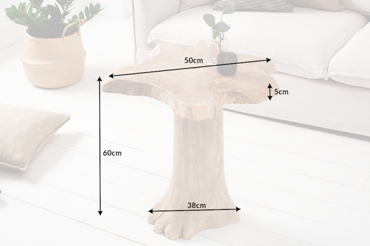 The massive Root coffee table is made of the roots of exotic teak wood. The treated wood was intentionally left in its natural state to achieve a rustic feel. Each table is a unique original. Because it is a natural product, there are differences in appearance and size. Can be used as a side table or a stool.